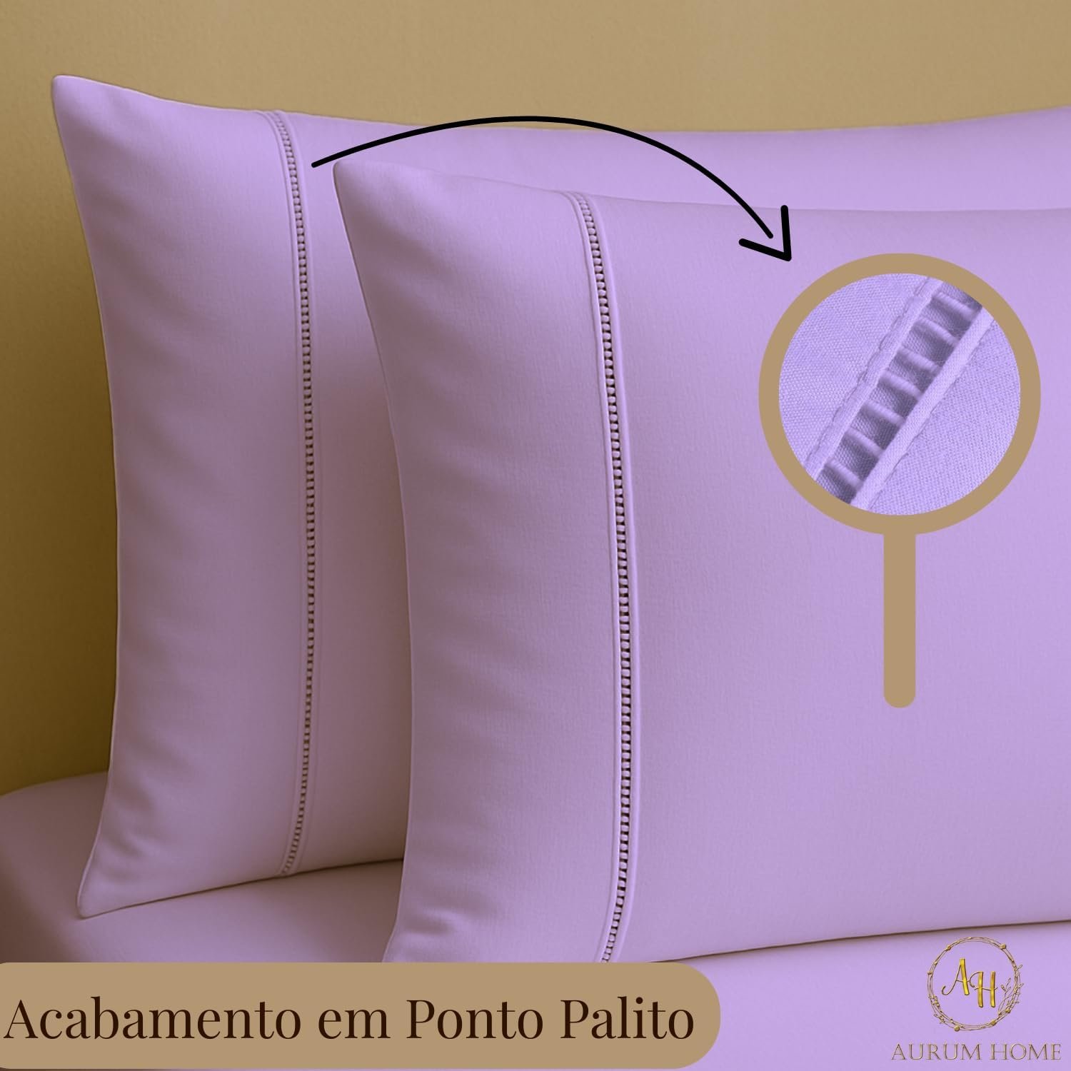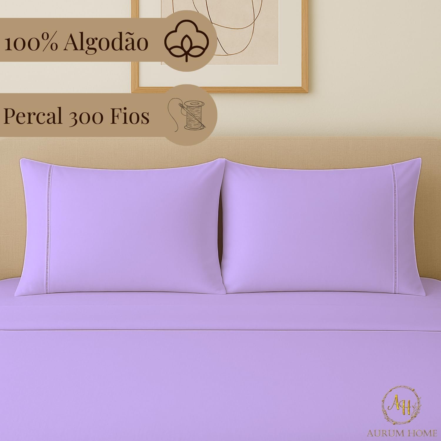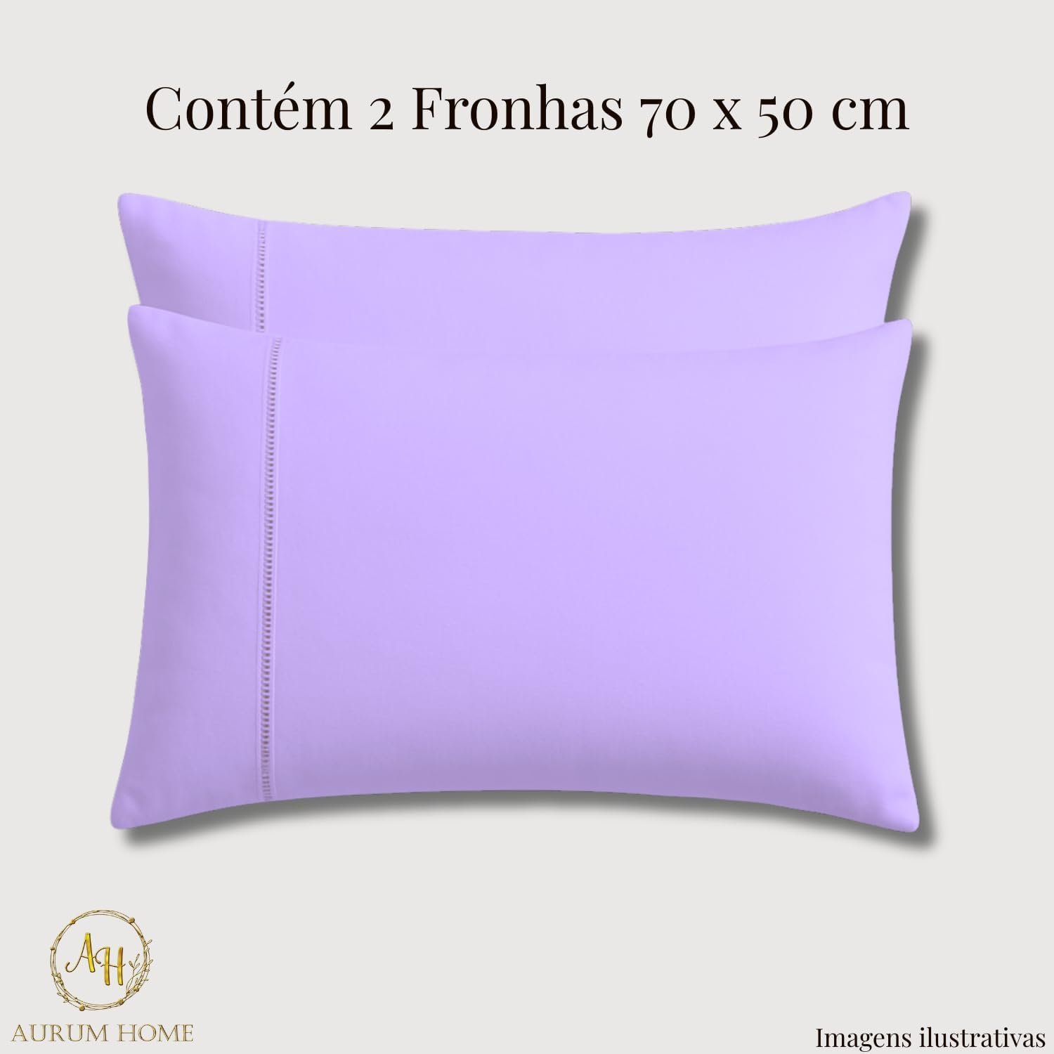 Fronhas de Algodão Percal 300 Fios Com Ponto Palito e Envelope Interno (2, Lilás)