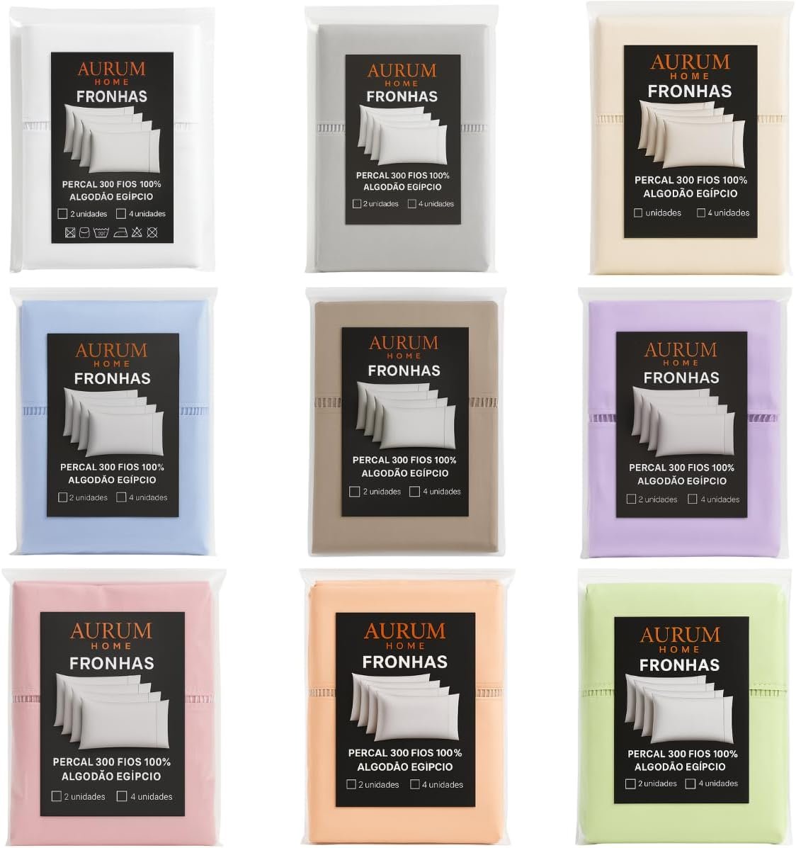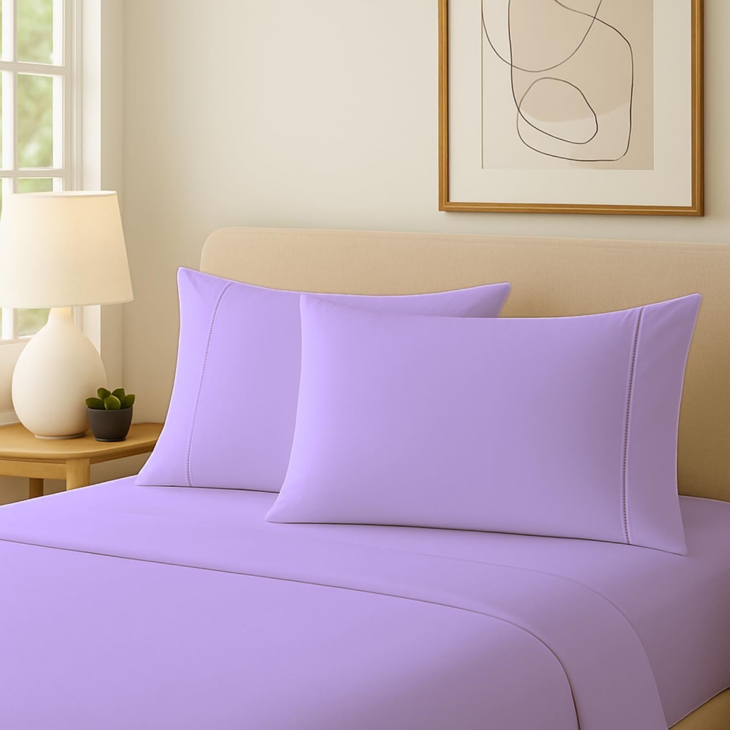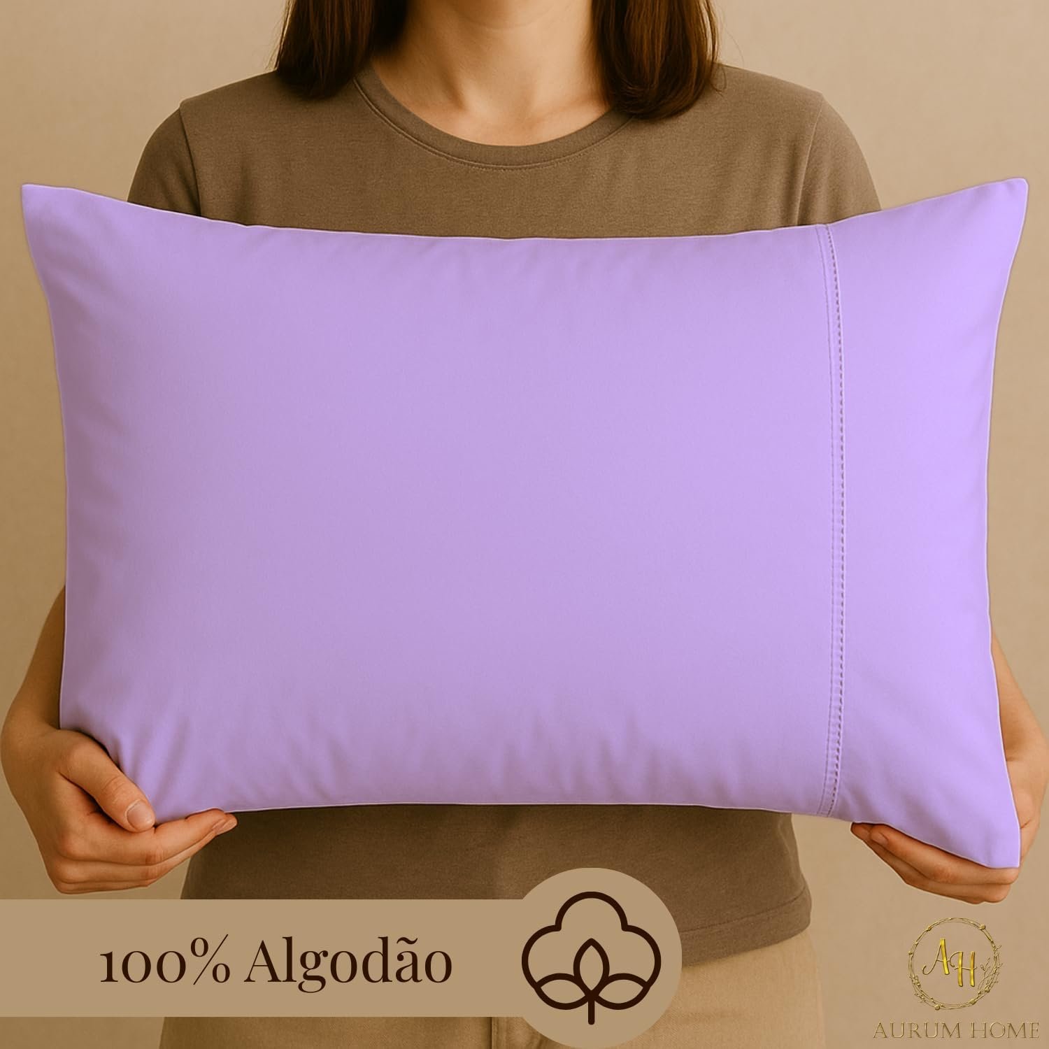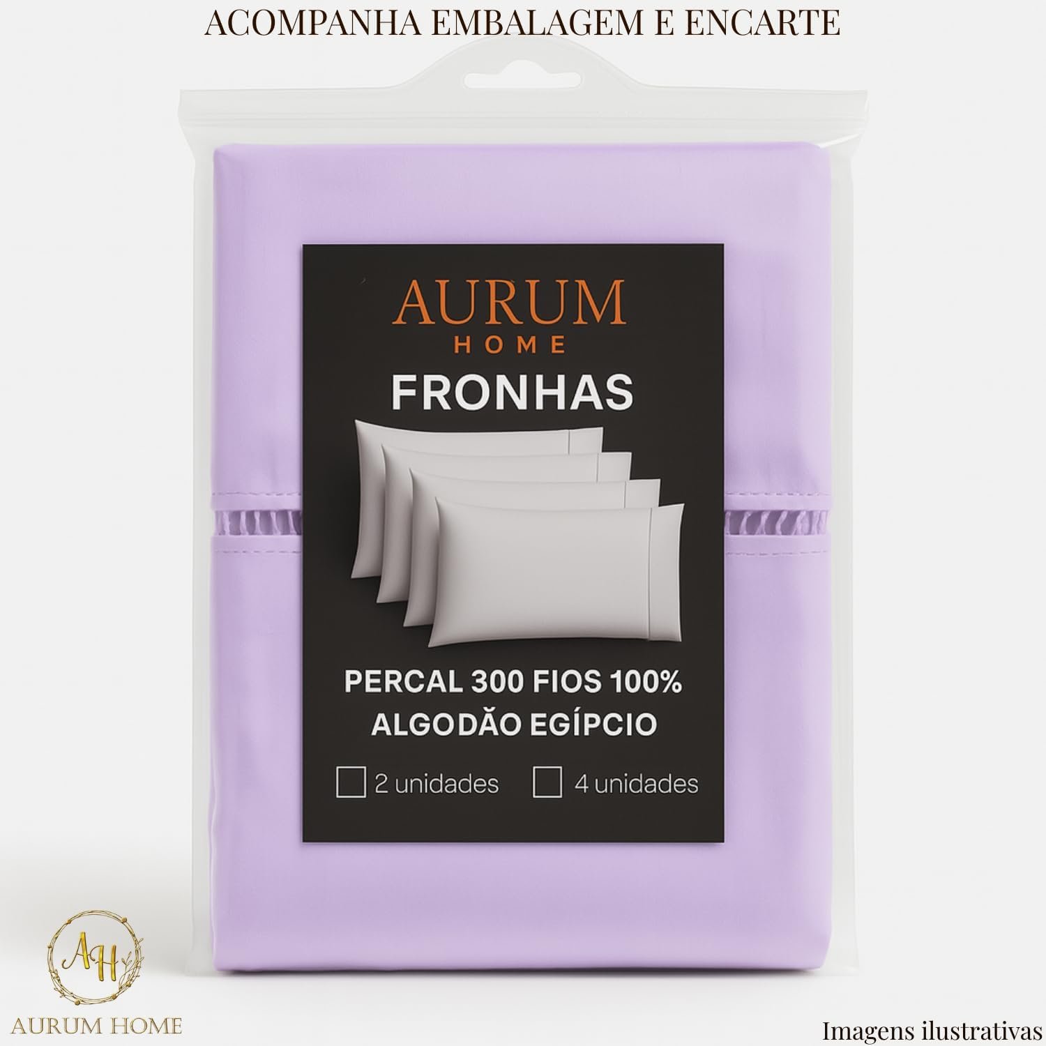 Fronhas de Algodão Percal 300 Fios Com Ponto Palito e Envelope Interno (2, Lilás)