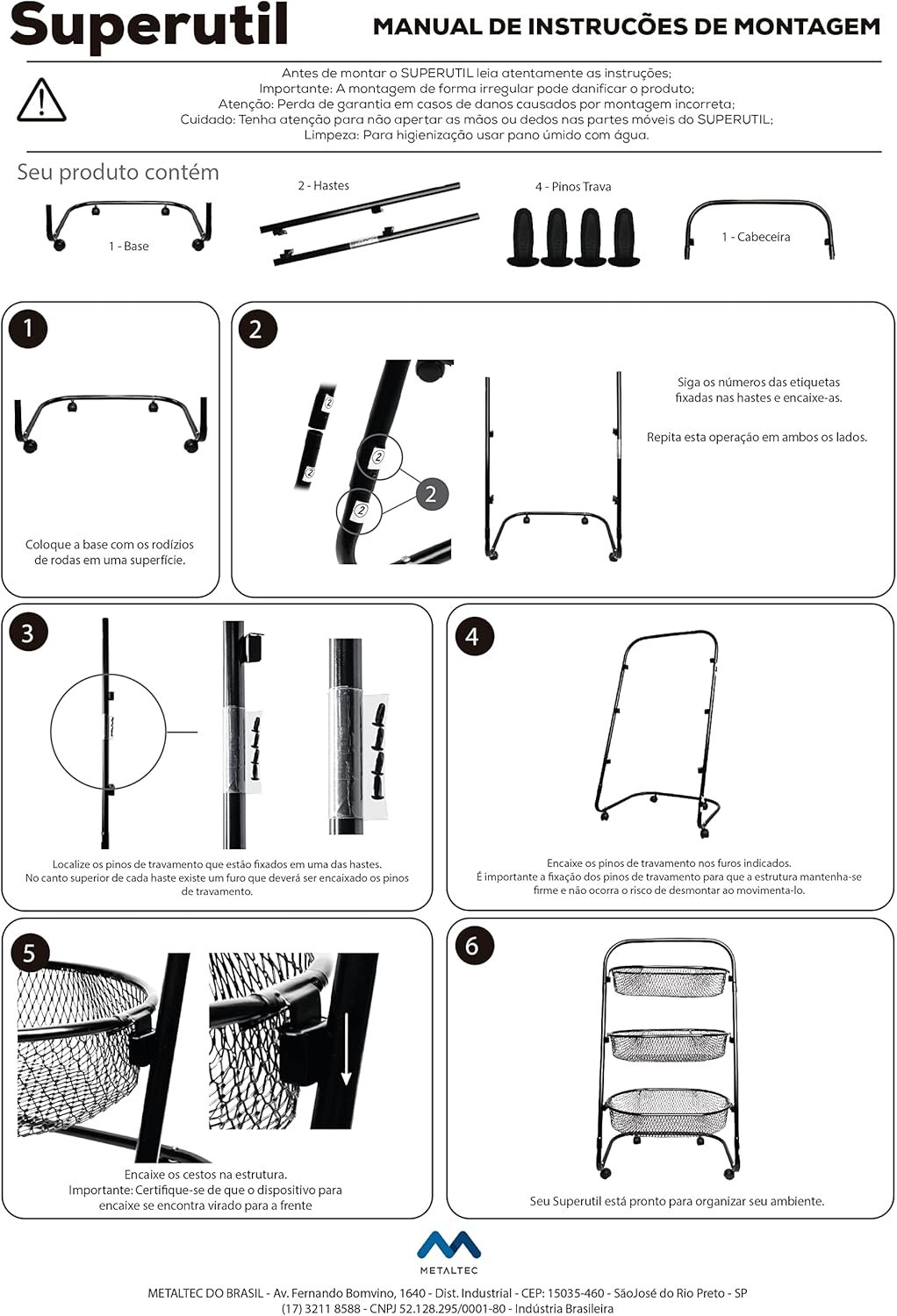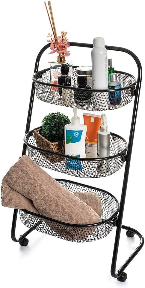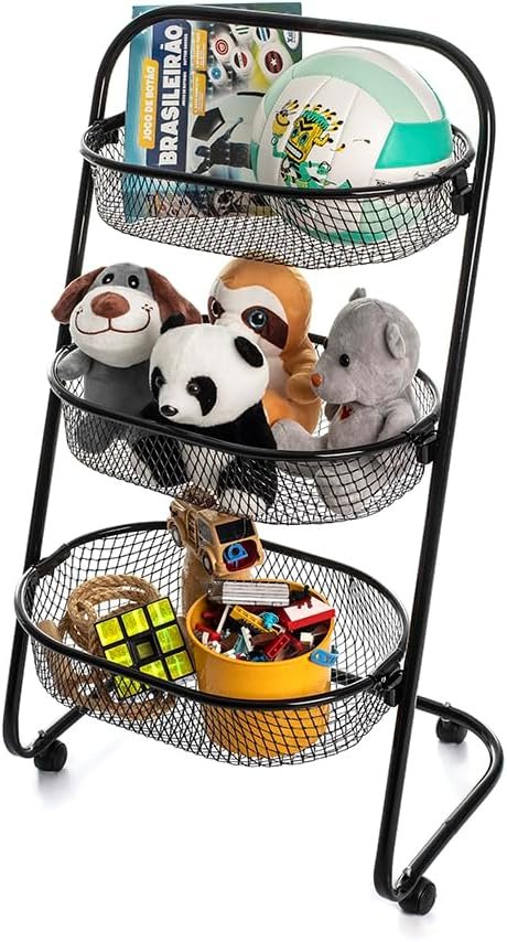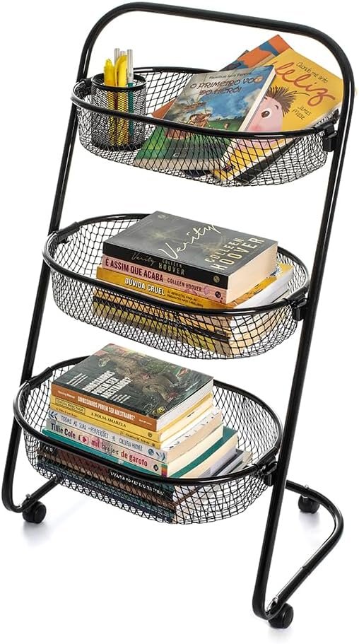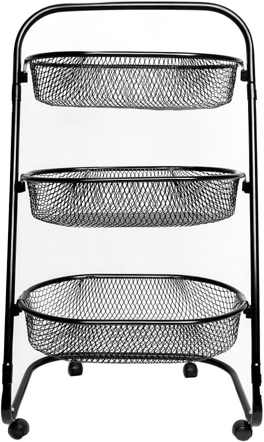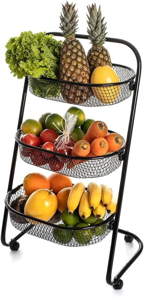 Fruteira De Aço Com Rodinhas Carrinho Organizador De Chão 3 Cestos Multiuso Para Cozinha Estrutura Reforçada Metaltec – Preto