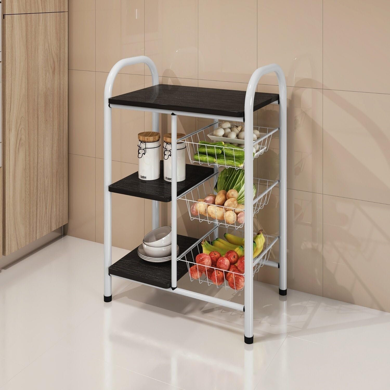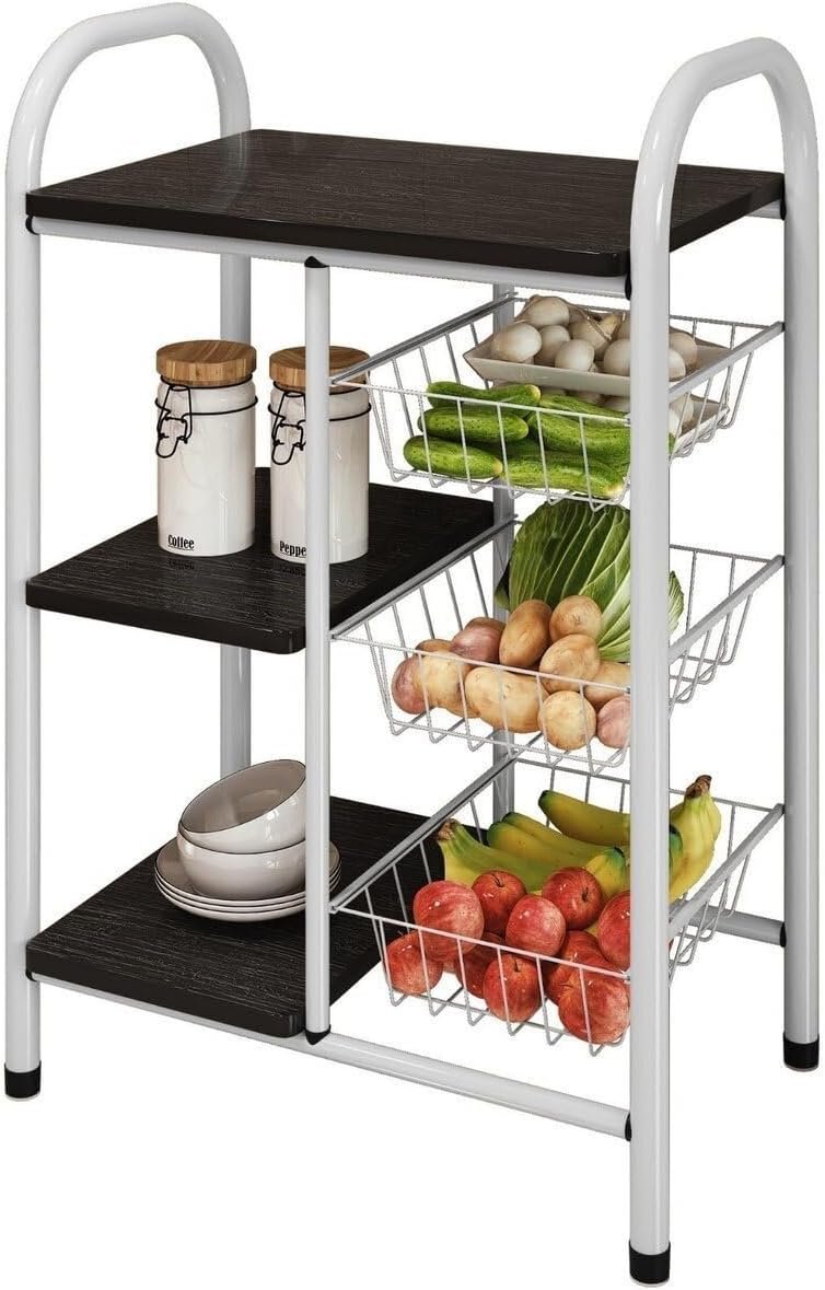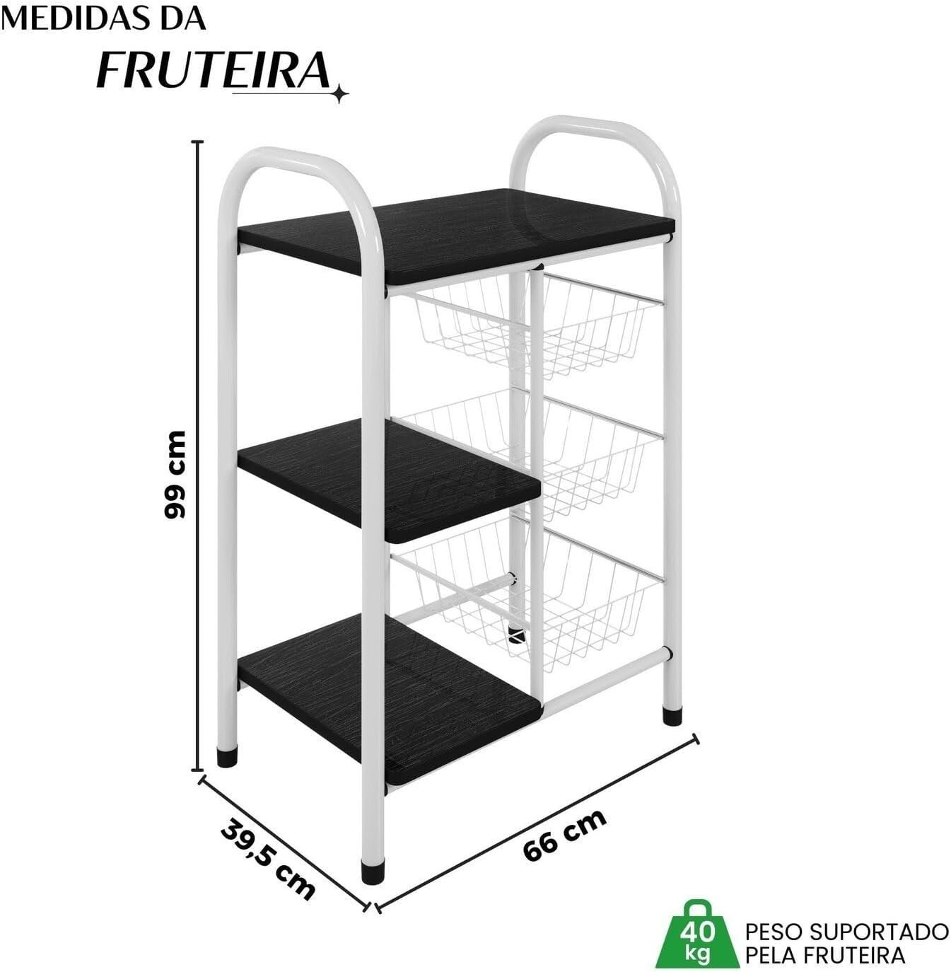 Fruteira para Cozinha Giovana Fruteira em Aço com 3 Cesto Branco/Preto