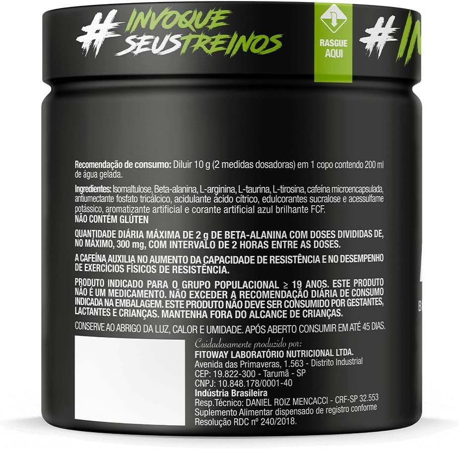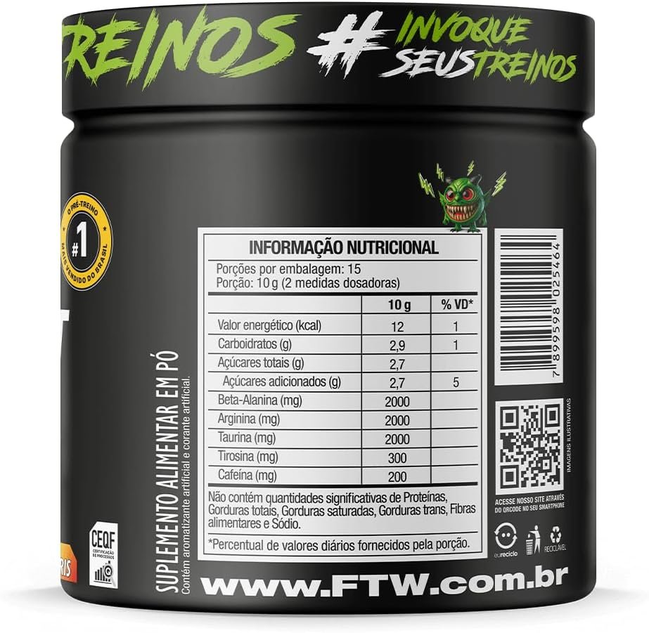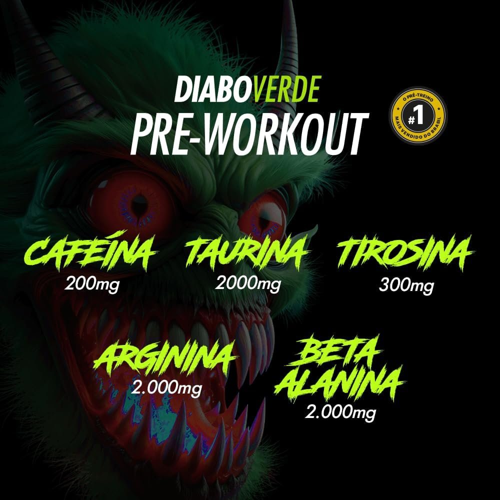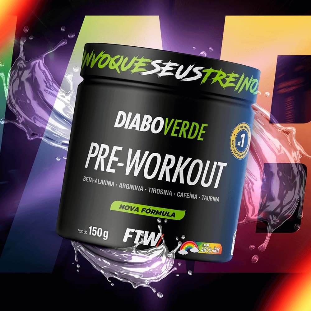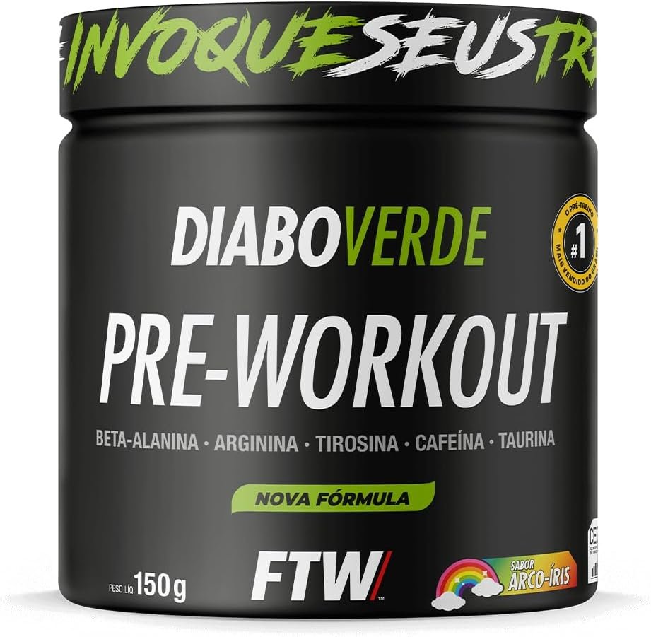 FTW Pré-Treino Diabo Verde – Energia Extrema, Força e Foco – Potência Hardcore com Cafeína, Beta-Alanina – Para Treinos Intensos – sabor: Arco Iris – Pote 150g