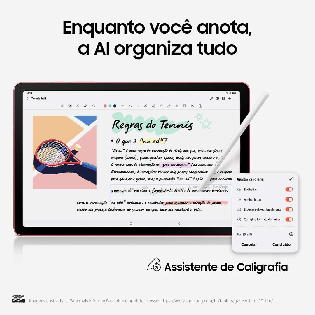 Galaxy Tab S10 Lite, 128GB, Tela 10.9″, WIFI, Vermelho