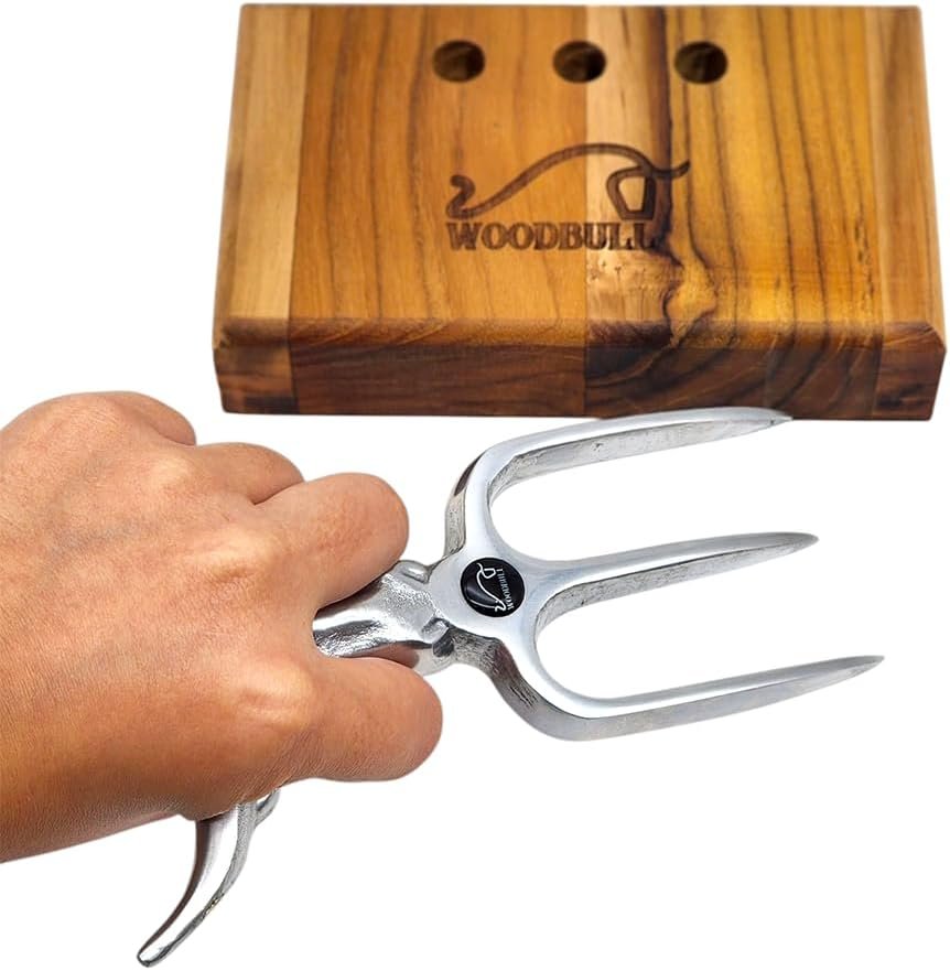 Garfo Tridente para Churrasco em Alumínio Fundido Polido, Perfeito para Preparar, Cortar e Servir Carnes com Precisão, Durabilidade e Estilo, Ideal para Churrasqueiros e Reuniões – WOODBULL.