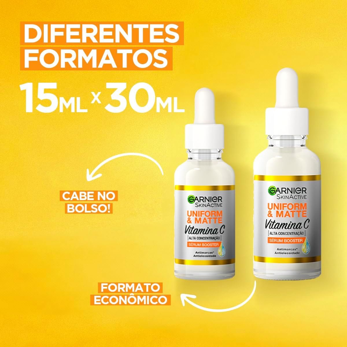Garnier Uniform & Matte Sérum Facial Antimarcas Vitamina C, Niacinamida e Ácido Salicílico, Reduz Marcas Visivelmente, Controla Oleosidade, Efeito Matte, Hidrata e Uniformiza a Pele, 15ml