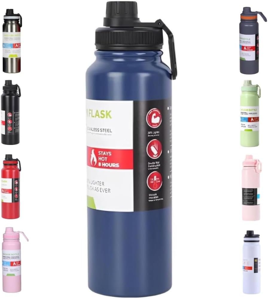 Garrafa de Água Térmica Inox 800ml Esportiva com Alça Parede Dupla Isolada a Vácuo Antivazamento Garrafinha Academia Fitness Corrida Esportes Escritório – Premium (Azul)