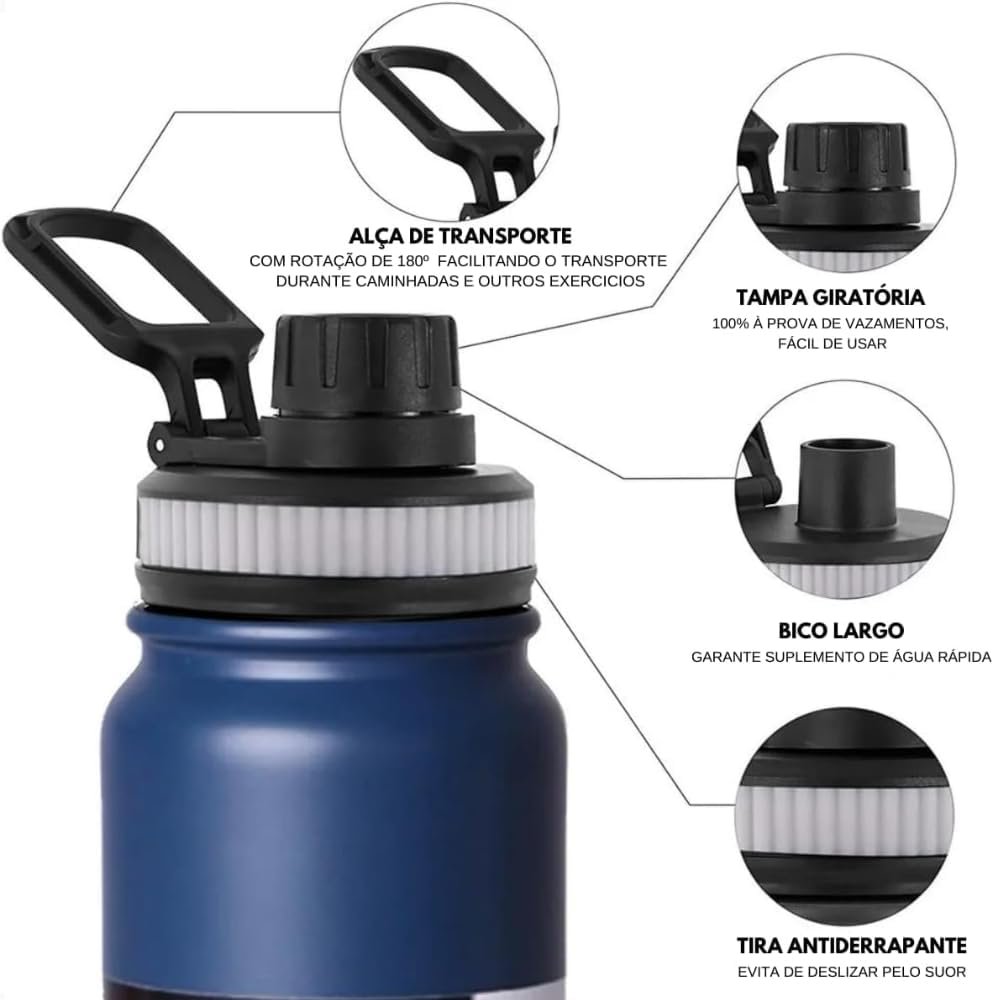 Garrafa de Água Térmica Inox 800ml Esportiva com Alça Parede Dupla Isolada a Vácuo Antivazamento Garrafinha Academia Fitness Corrida Esportes Escritório – Premium (Rosa)