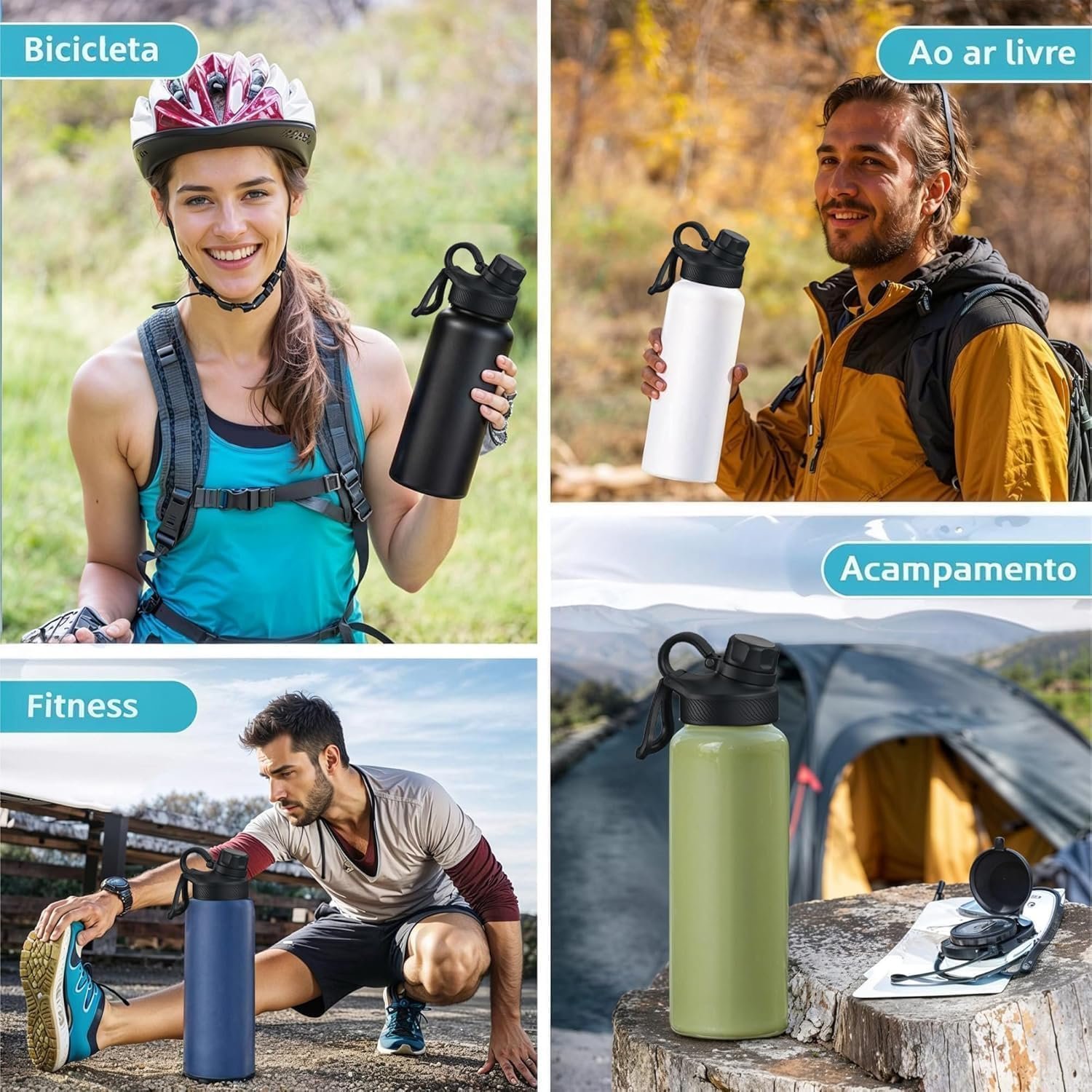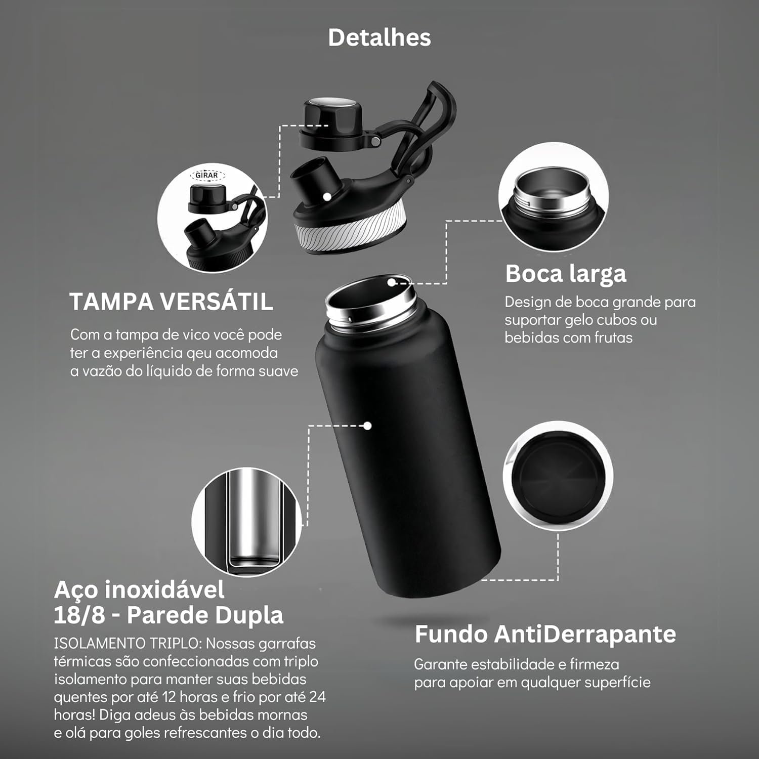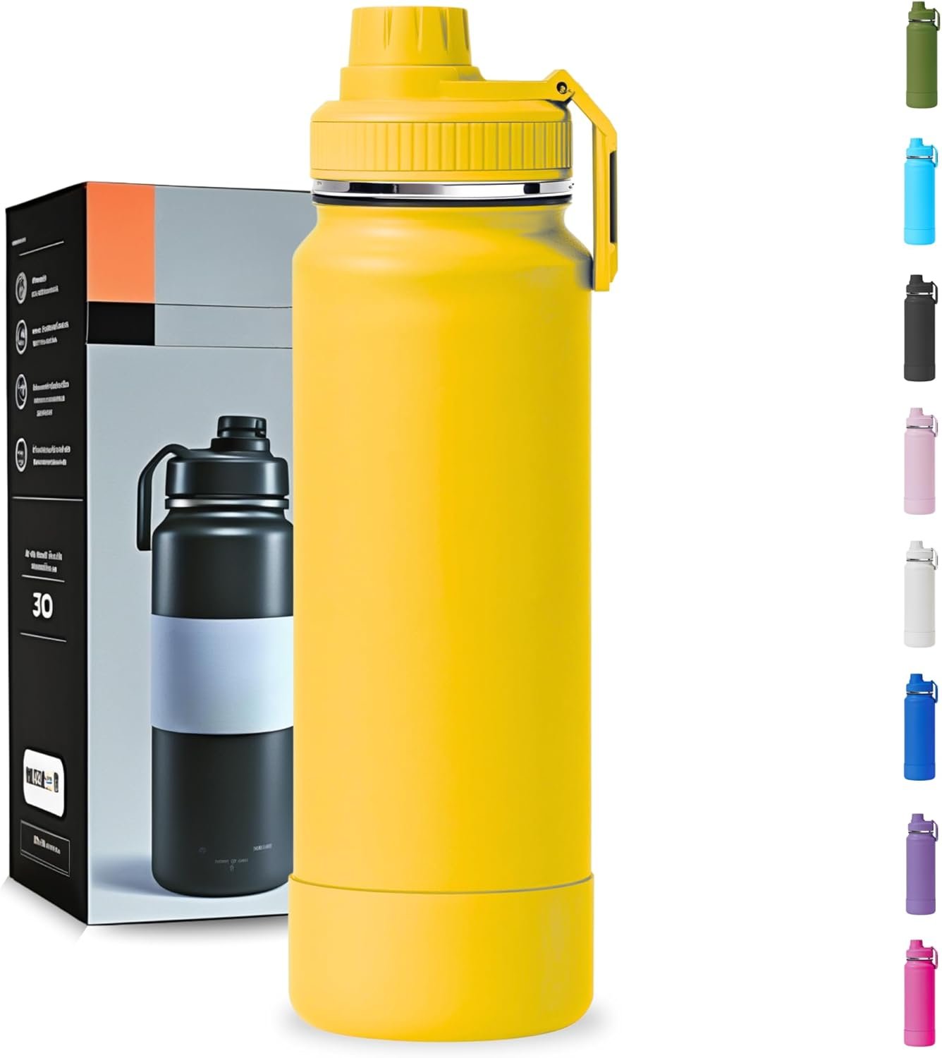 Garrafa Térmica 1000ML – Duplamente Isolada a Vácuo, Aço Inox 304, Base Emborrachada Anti Derrapante, Mantém Bebidas Quentes por 12 Horas e Geladas por 24 Horas (Amarelo Slin)