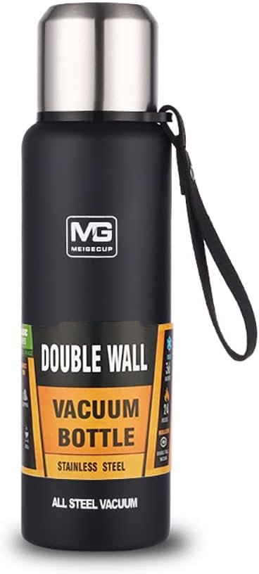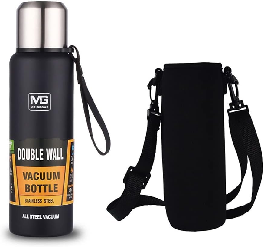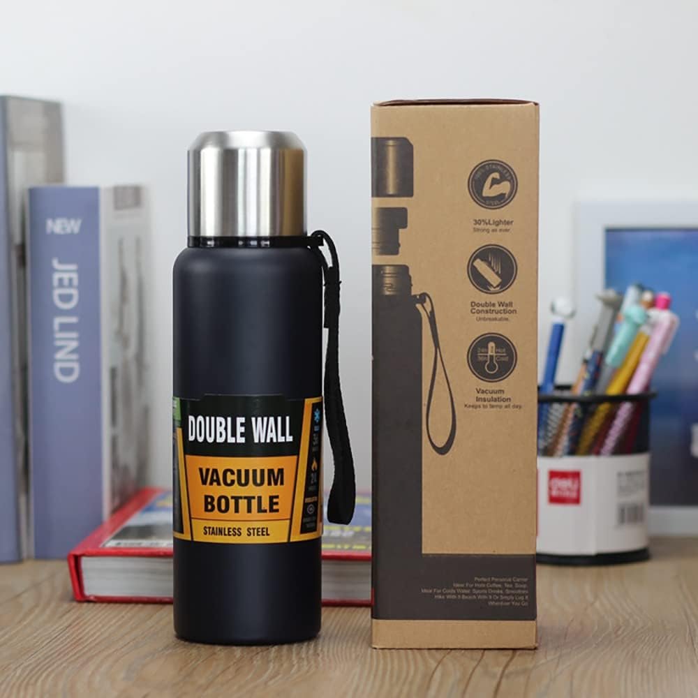Garrafa Térmica De Aço Inoxidável Com Corda E Bolsa (Preto 1L)