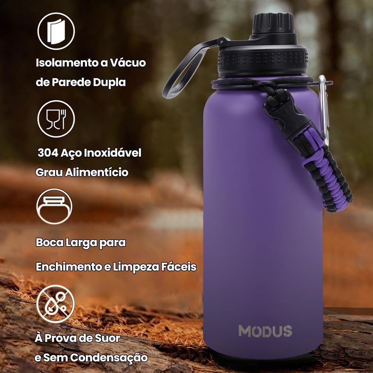 Garrafa Térmica De Água Isolada 1000ml Quente & Frio De Aço Inox Com Alça (Roxo)