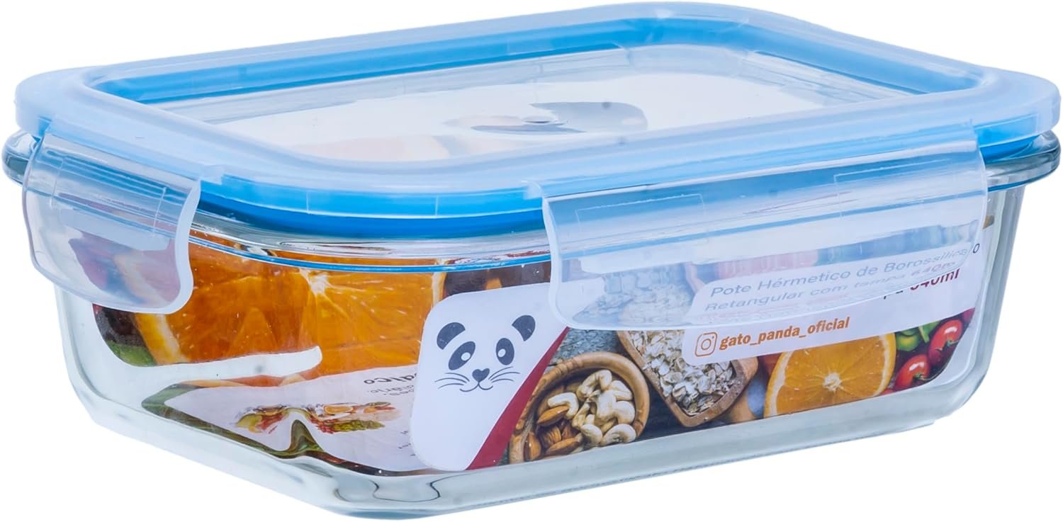 Gato Panda Kit 6 Potes de Vidro Hermético 640ml Borossilicato com Tampa 4 Travas – Recipiente Retangular para Marmita, Micro-ondas, Forno e Freezer – Armazenamento de Alimentos – Sem BPA