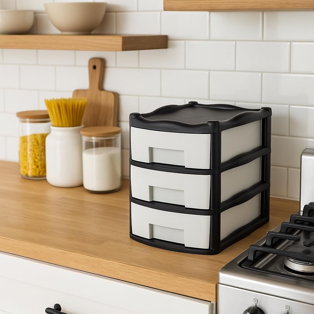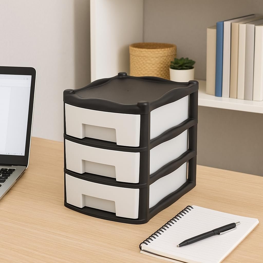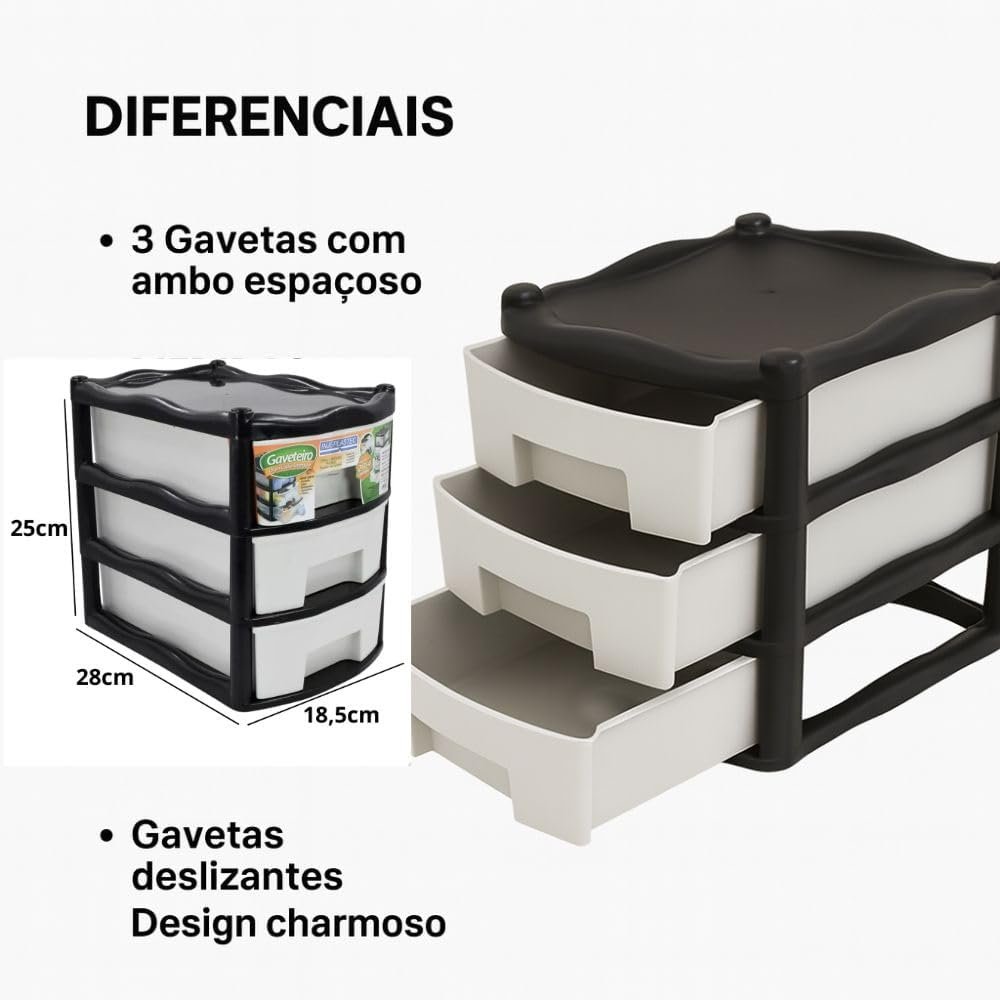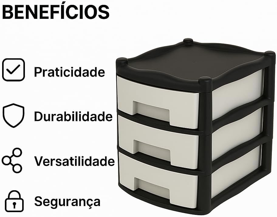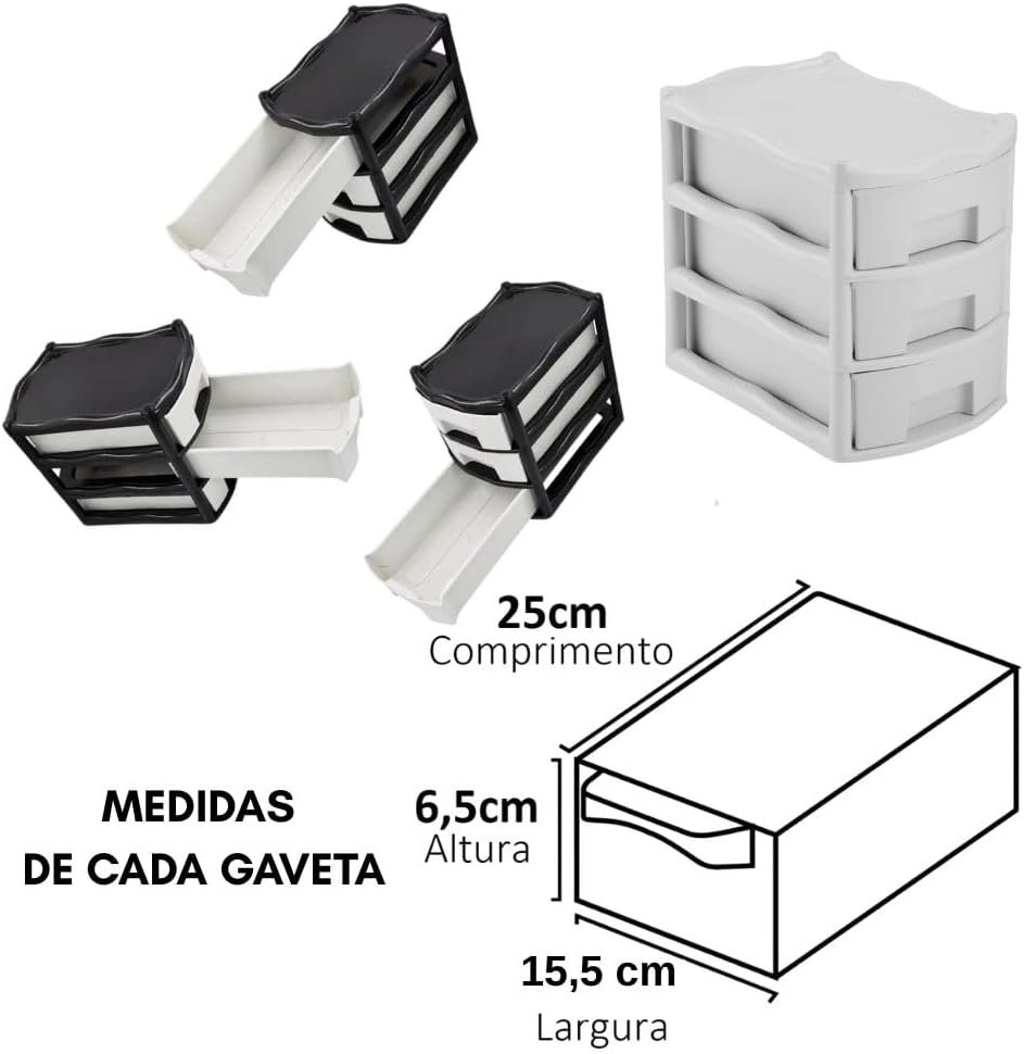 Gaveteiro Organizador de Mesa com 3 Gavetas Plástico Resistente para Escritório Casa Ateliê Cozinha e Banheiro (BRACO)