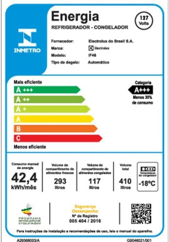 Geladeira Electrolux Frost Free Inverter 410L Efficient com AutoSense Duplex Branca (IF46) 127V