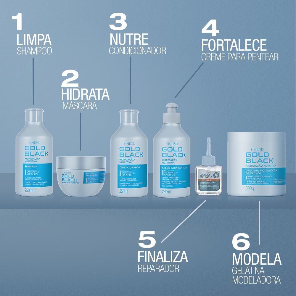 Gelatina Modeladora De Cachos Amend Gold Black Hidratação Nutritiva, 500g
