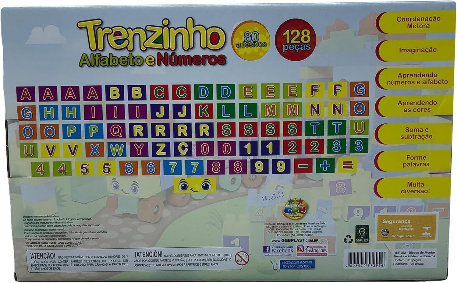 GGB Plast Brinquedo Educativo Trenzinho Alfabeto e Números 128 Peças