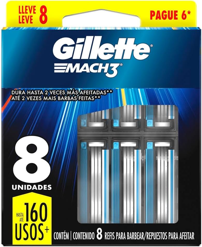 Gillette Mach3 – Carga para Aparelho de Barbear, Leve 8 Pague 6 (o pacote pode variar)
