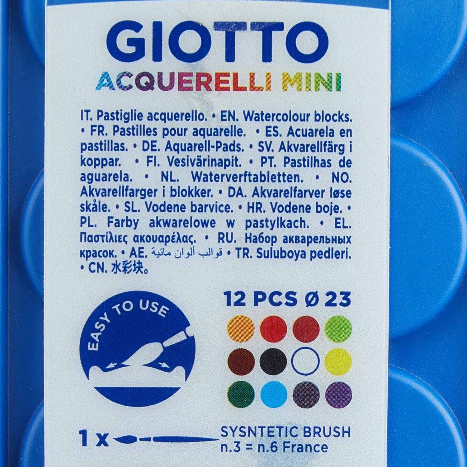 Descubra a magia das cores com a GIOTTO Acquarelli Mini! Este estojo compacto de aquarela em pastilhas de 23mm oferece 12 cores vibrantes para liberar sua criatividade. Ideal para artistas em movimento, este conjunto prático é perfeito para pinturas em qualquer lugar. Adquira já e dê vida às suas obras de arte!