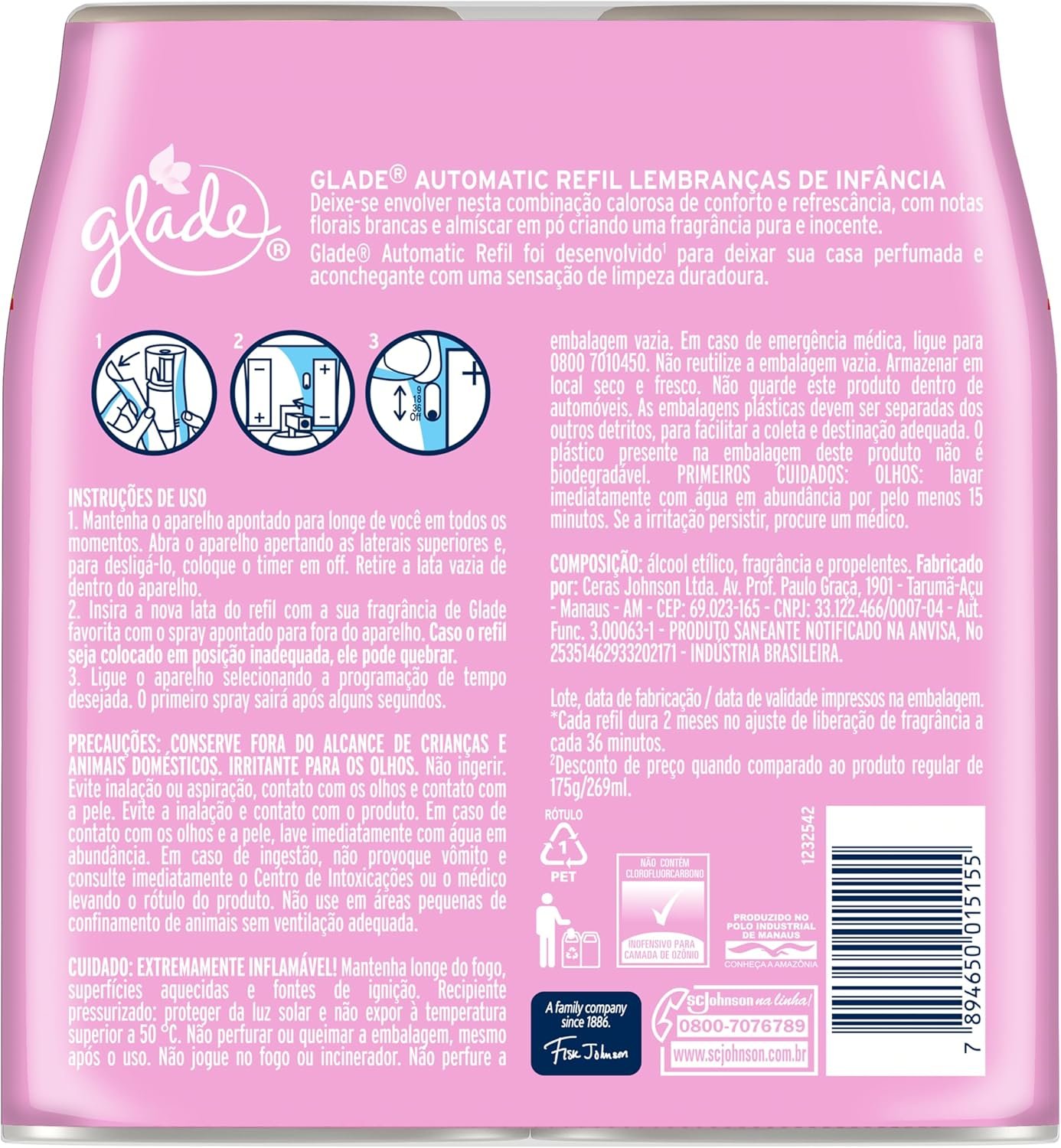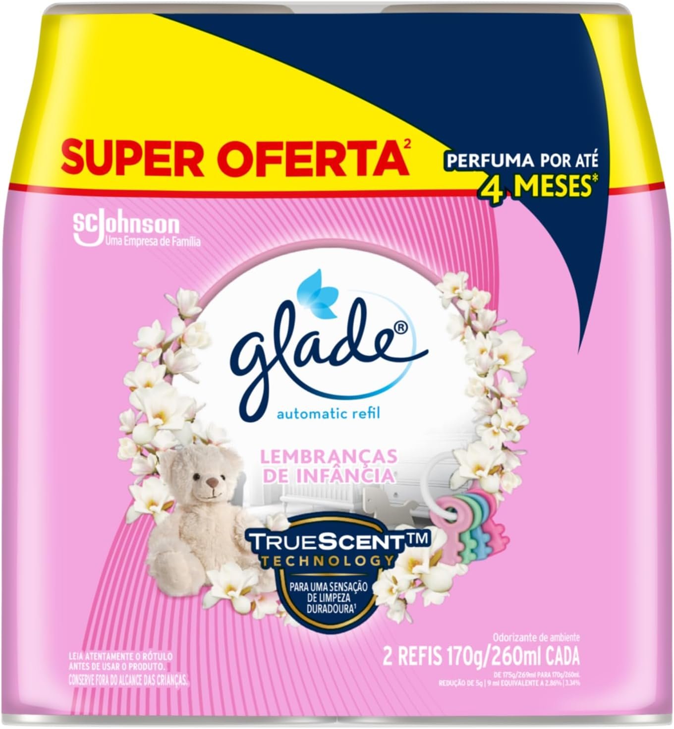 Transforme sua casa em um oásis de lembranças de infância com o Glade Aromatizador de Ambiente Automático. Com dois refis de 260ml cada, você terá longa duração de fragrância que traz conforto e familiaridade a cada cômodo. Aproveite a praticidade e eficiência deste aromatizador para manter seu lar sempre acolhedor e agradável.