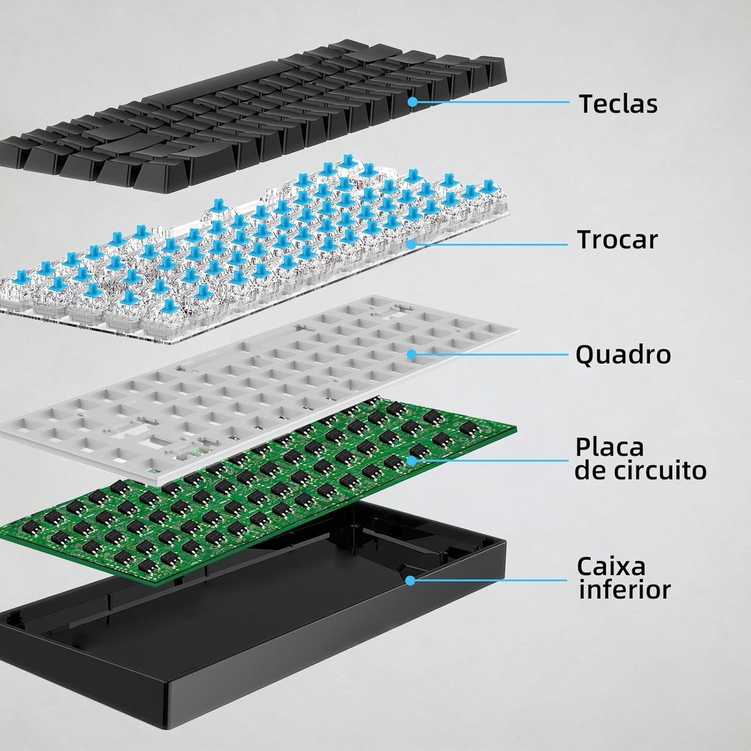 GOKOCO Teclado Mecânico com Fio 65% A1802, Gamer Switch Vermelho 68 Teclas, Iluminação RGB com 17 Modos, Hot-Swap, Teclas Anti-Ghosting Preto Black