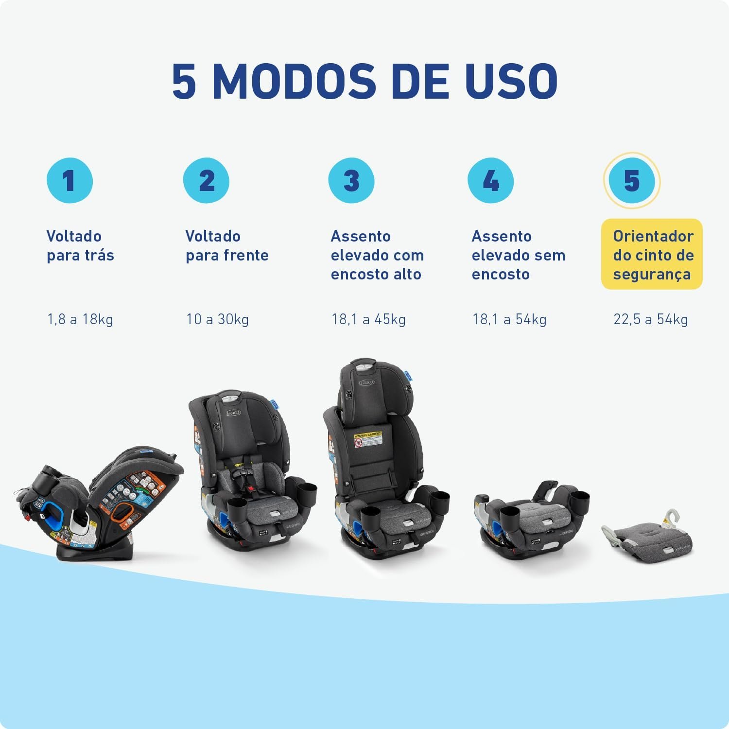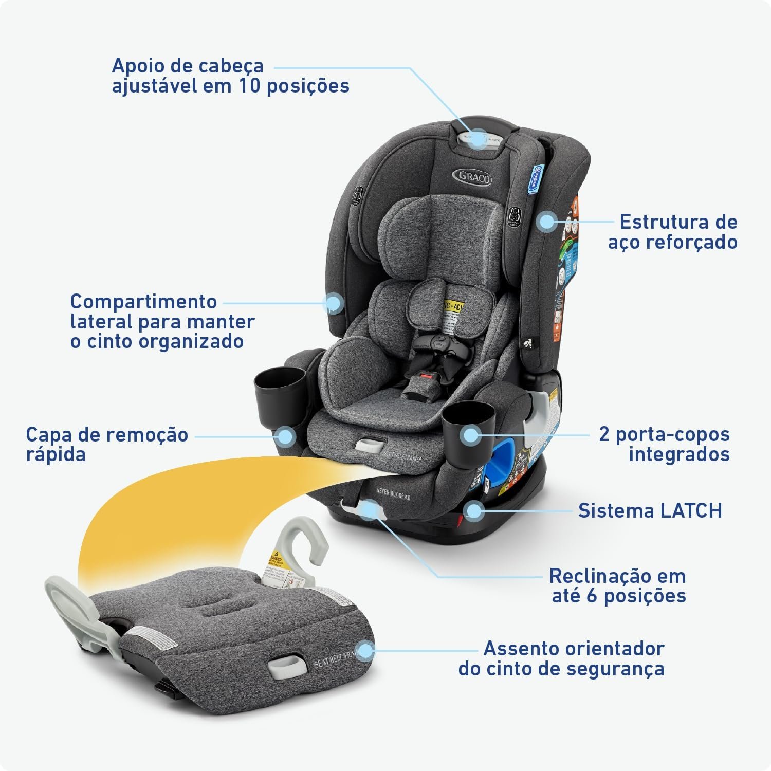 Graco Cadeira Infantil para Carro 4Ever® DLX Grad 5 em 1 com Sistema LATCH, Harrison, Cinza Chumbo