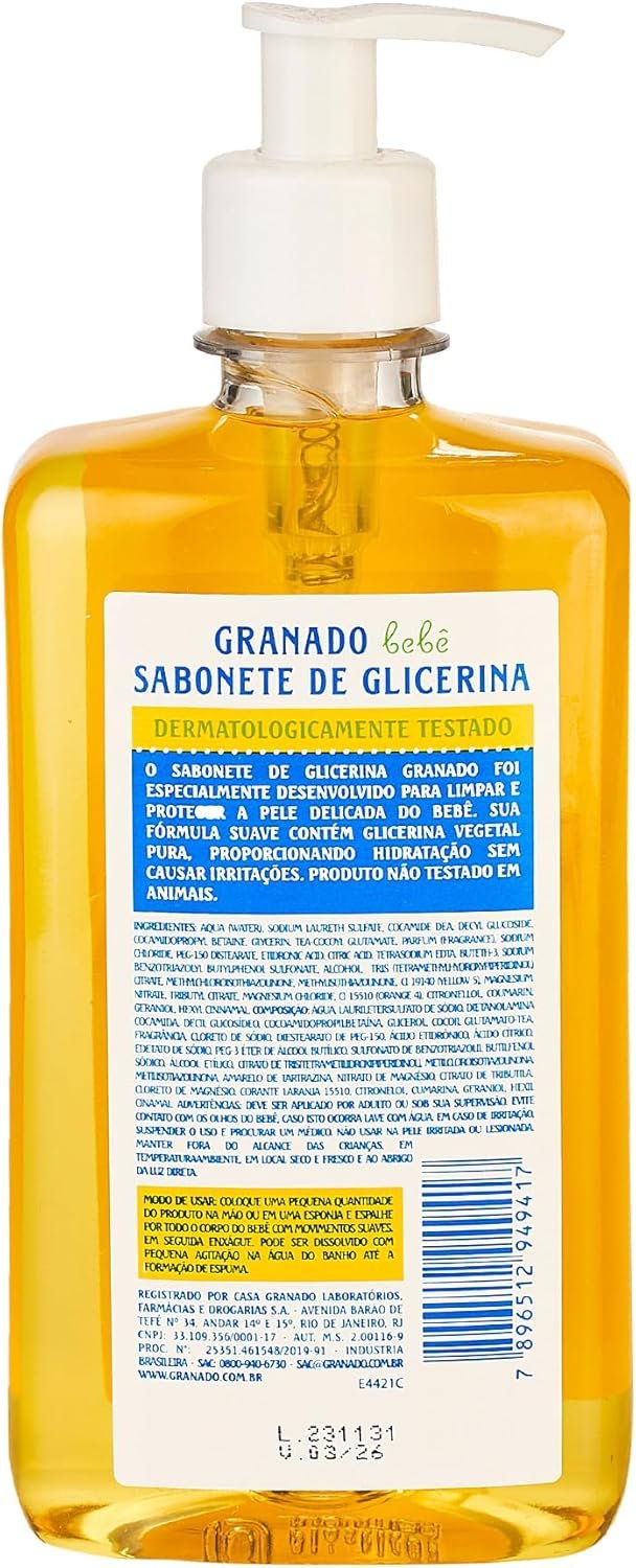 Descubra o cuidado suave e seguro que o Granado Sabonete Líquido Bebê proporciona à pele do seu pequeno. Com fórmula tradicional, hipoalergênica e dermatologicamente testada, este sabonete de 500ml foi especialmente desenvolvido para manter a pele delicada e protegida, garantindo limpeza sem agredir. Aproveite a tradição e a qualidade Granado para o bem-estar do seu bebê.