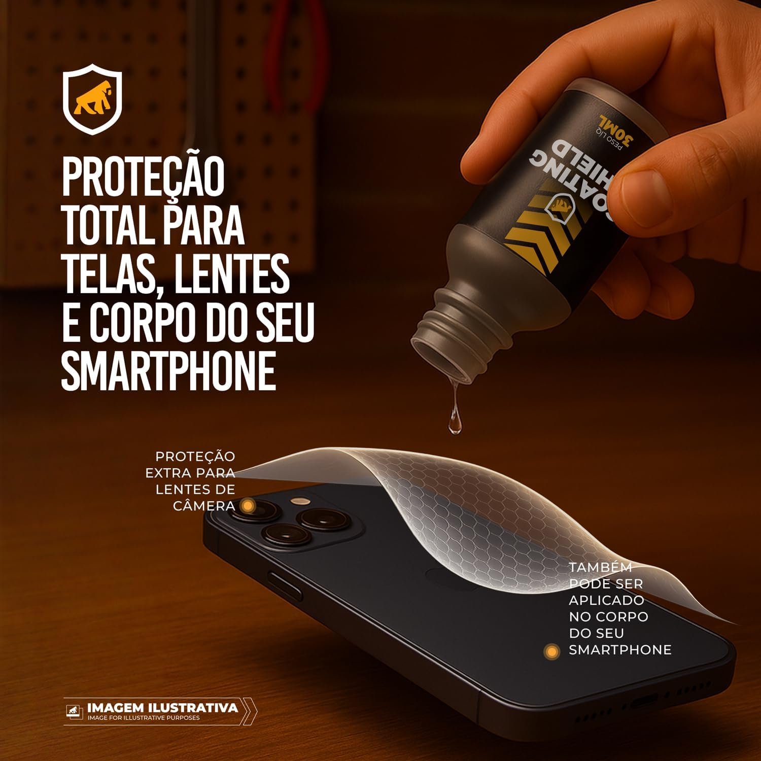 Gshield Nano Vitrificador Coating 9H, Revestimento Líquido Transparente para Smartphone ou Pintura Automotiva, Proteção contra Micro Riscos, Sujeira, UV e Repelente Água, 30ml