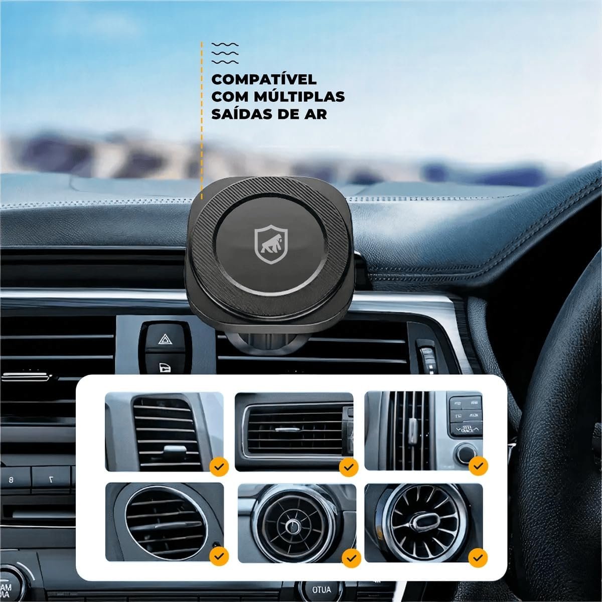 Gshield Suporte Veicular e Carregador Turbo Sem Fio 15W Compatível com MagSafe, Carregamento Rápido por Indução Wireless Magnético com Clipe de Ar Condicionado para Carro, Tank Car, Preto