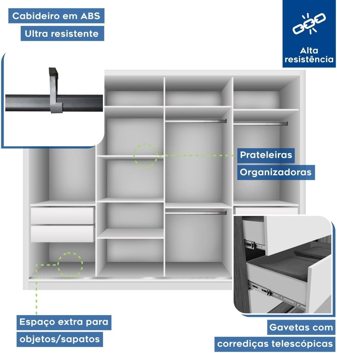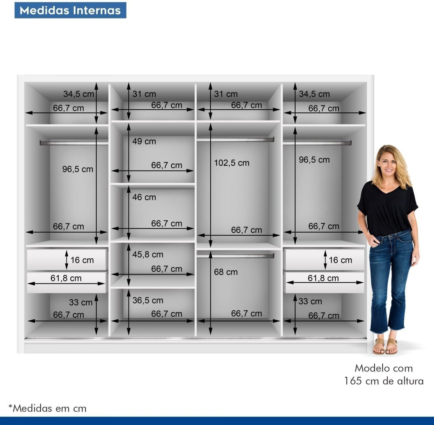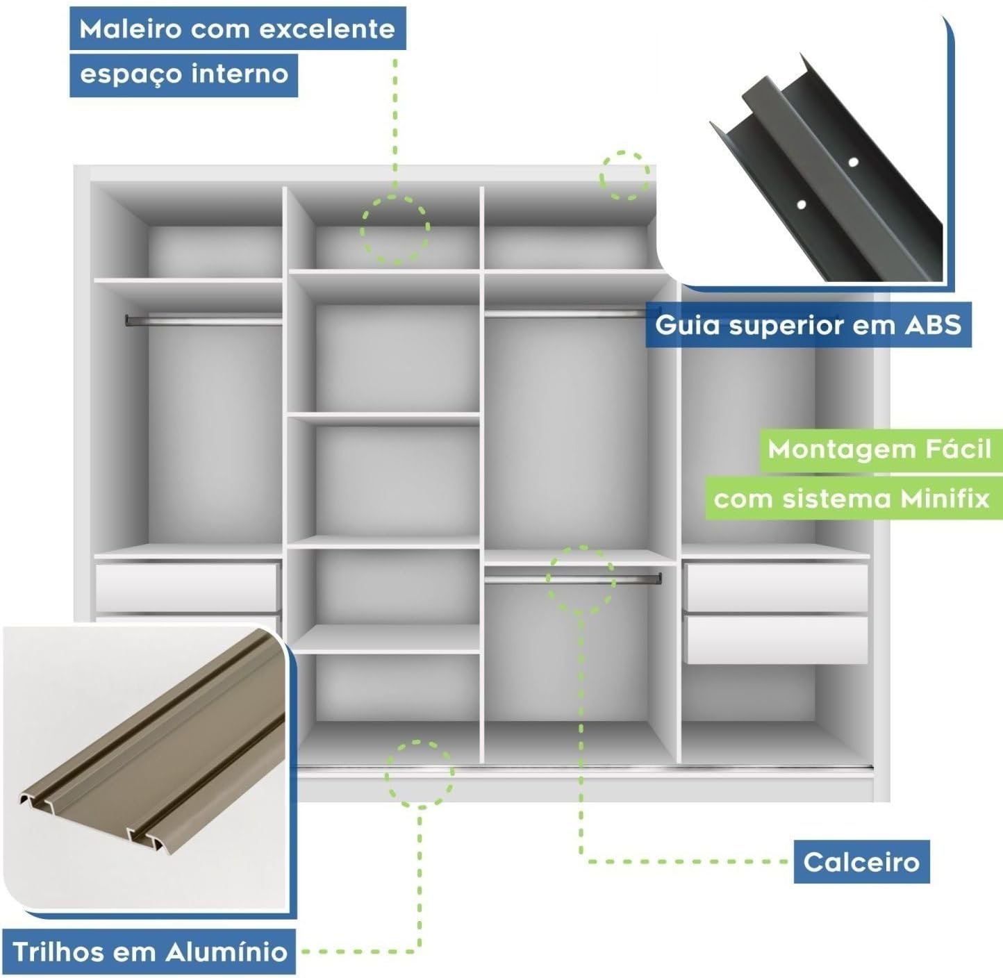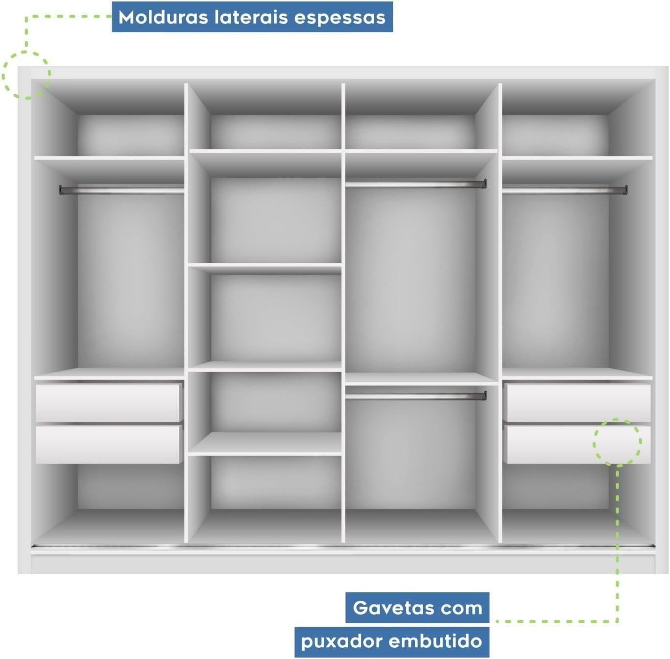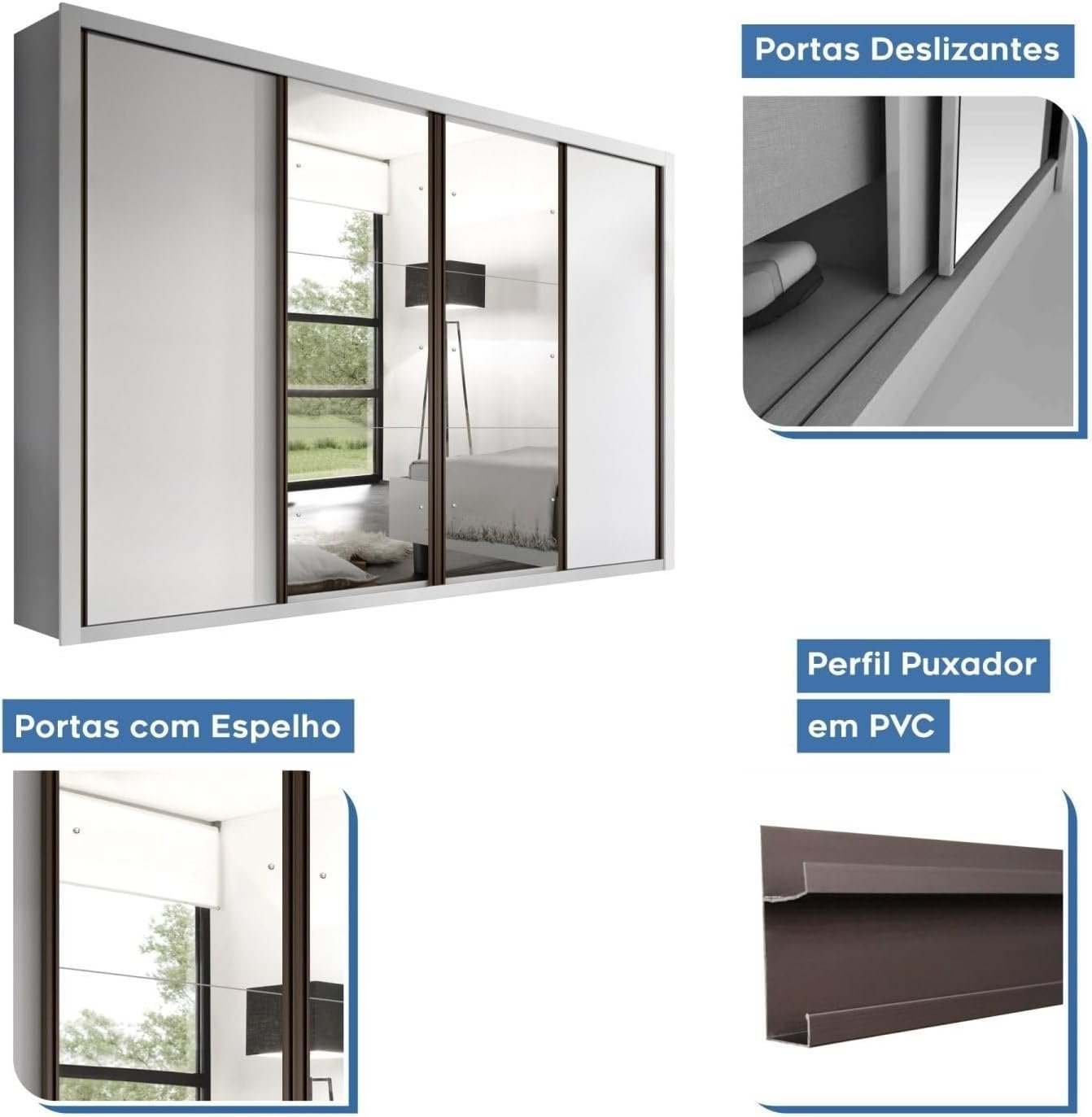 Guarda Roupa Casal com 6 Espelhos 4 Portas Zara Espresso Móveis Branco