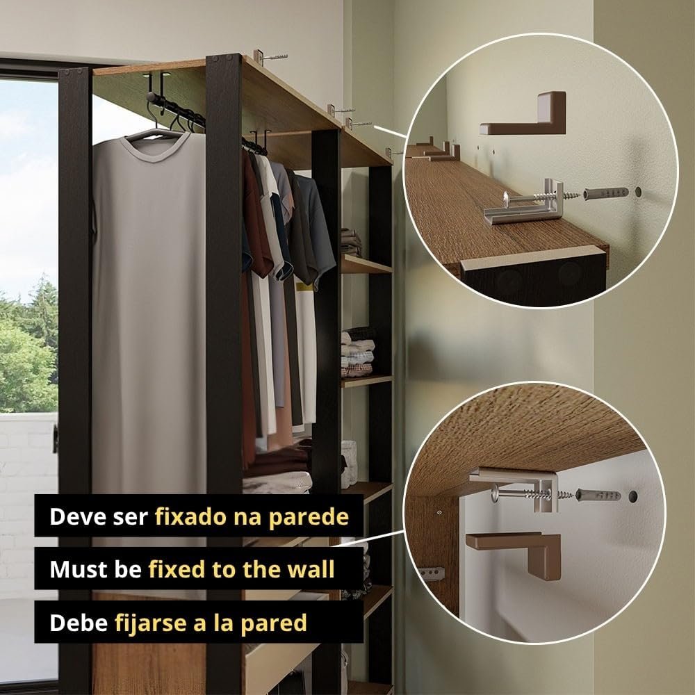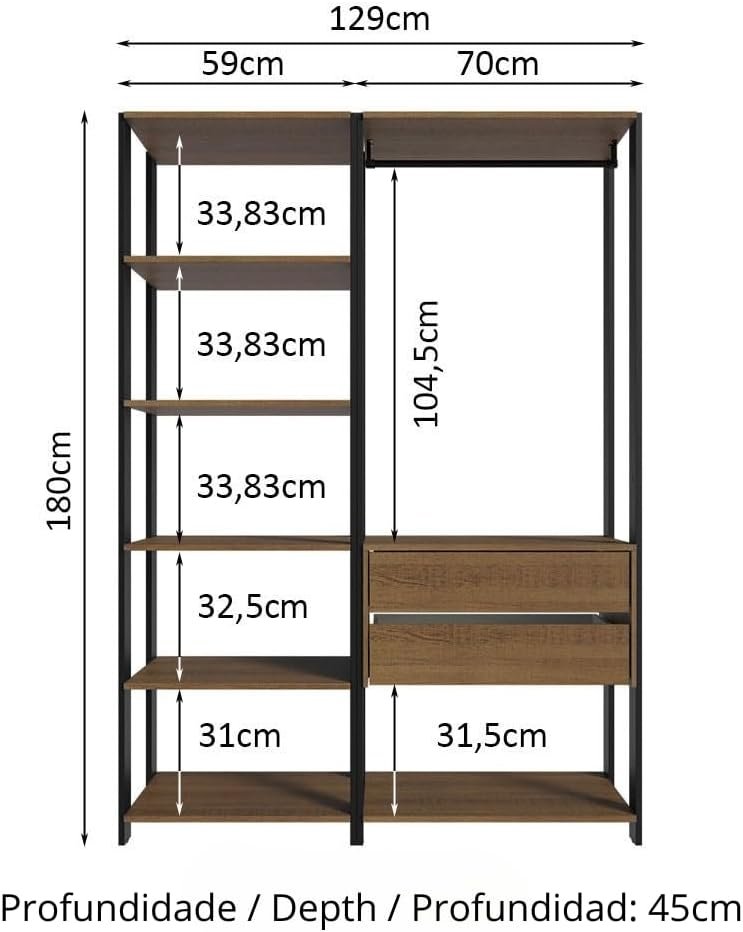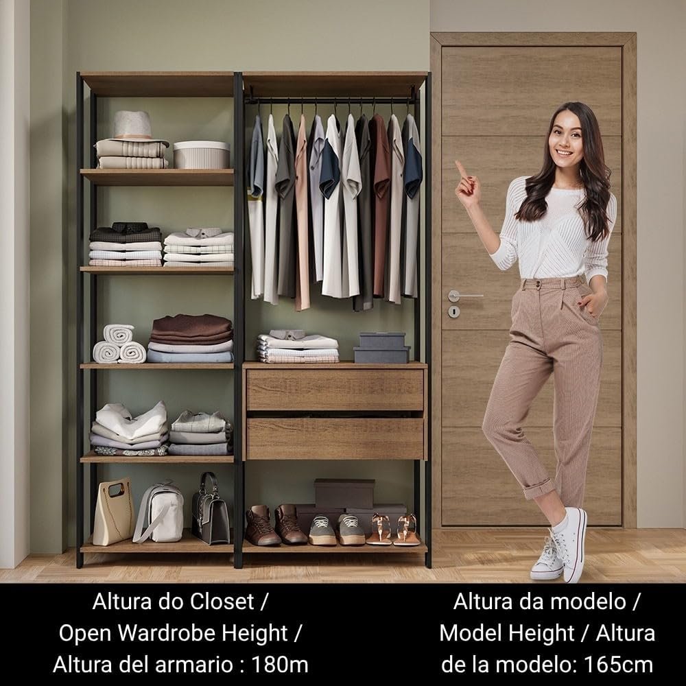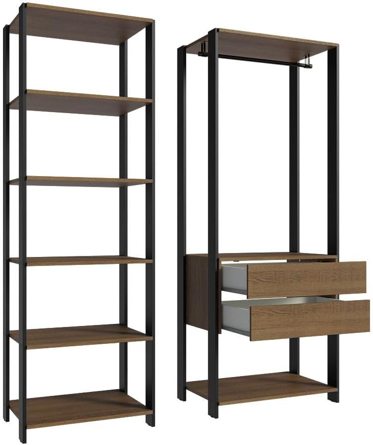 Guarda-roupa Closet Modulado Valencia 2 Gavetas 129cm Rustic/preto Madesa