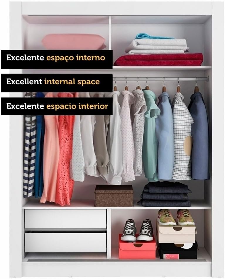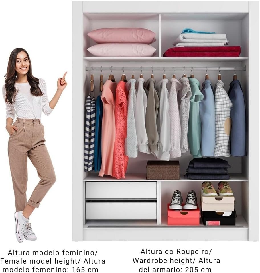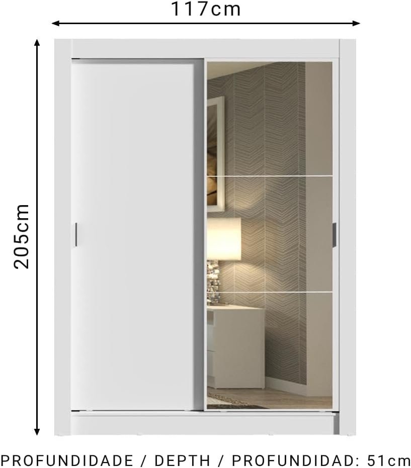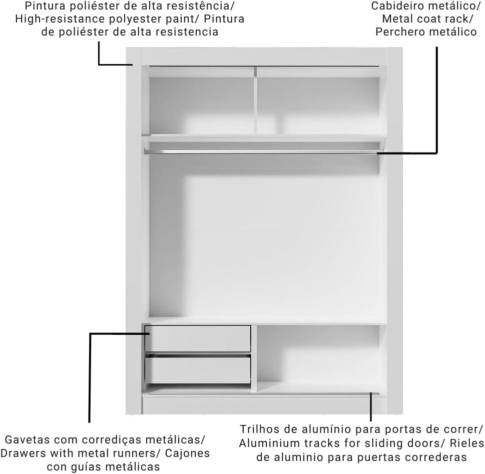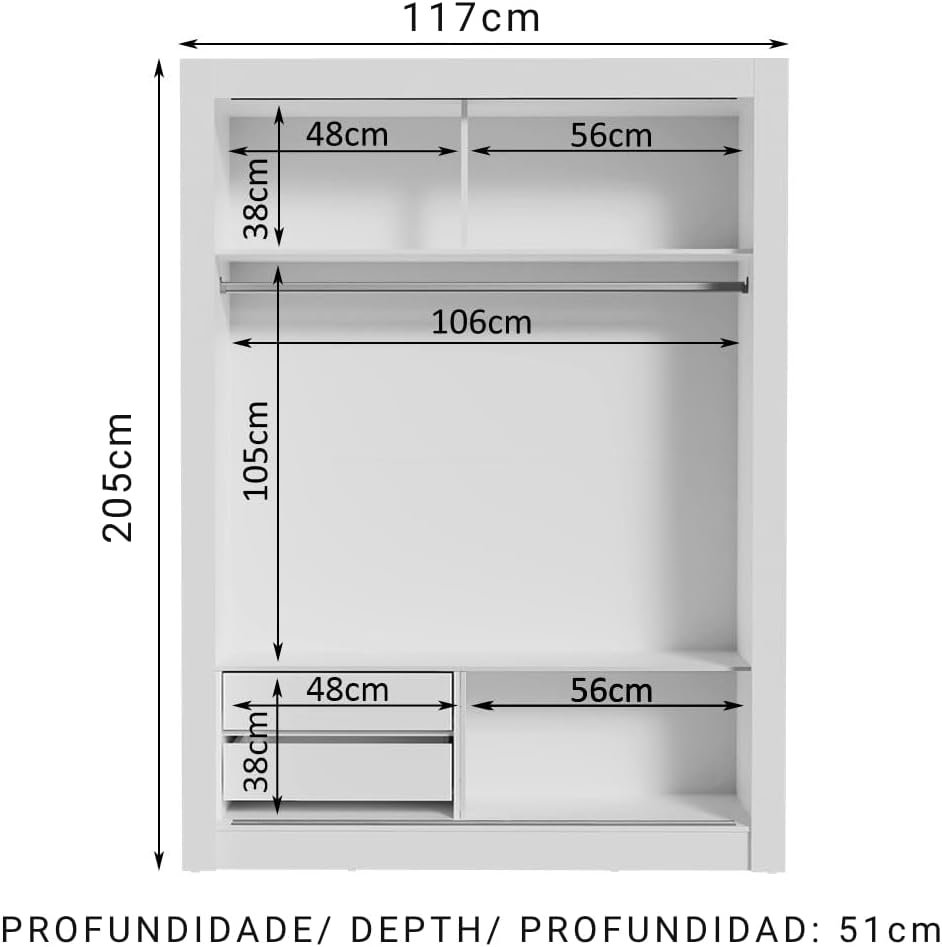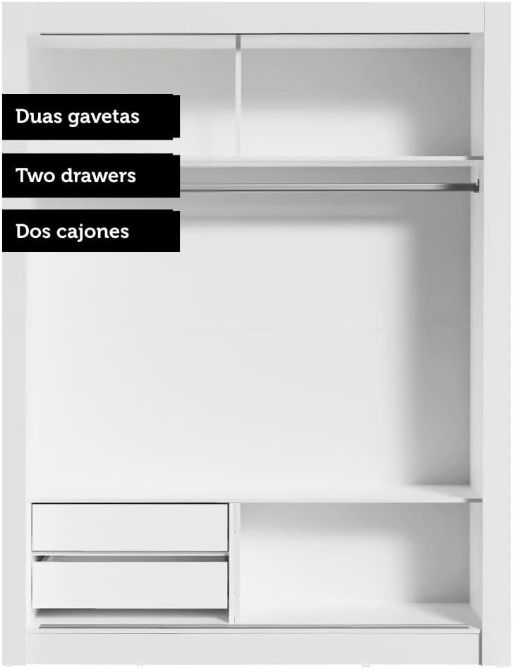Guarda-Roupa Solteiro Madesa Dallas 2 Portas de Correr com Espelho 2 Gavetas