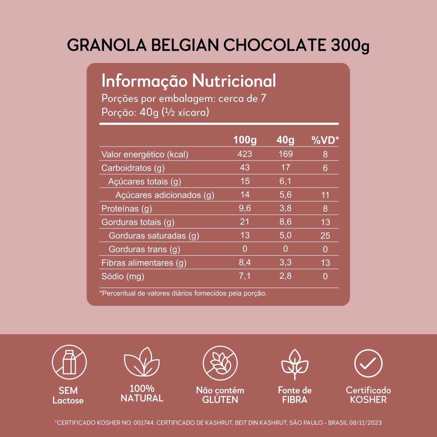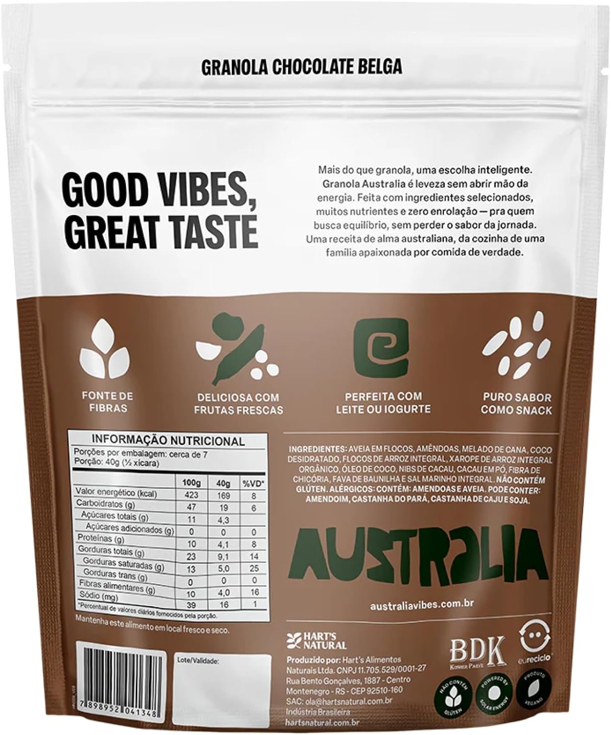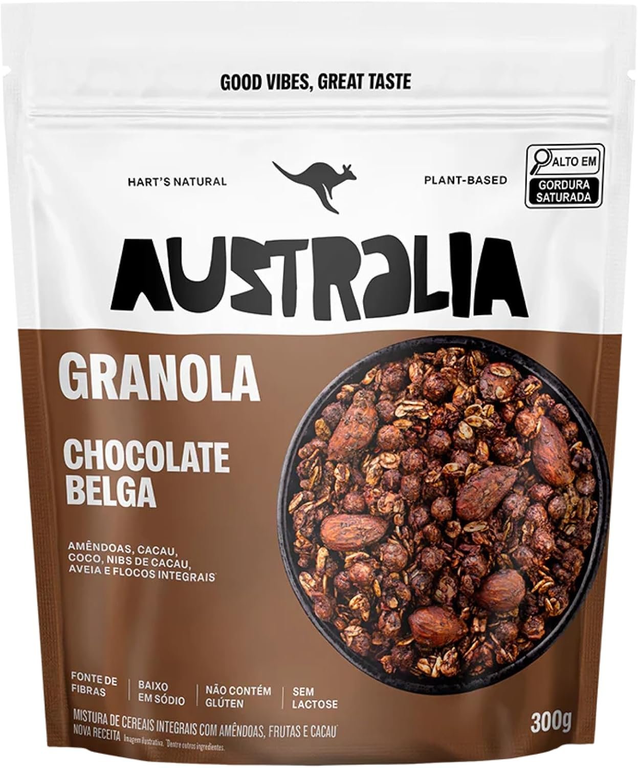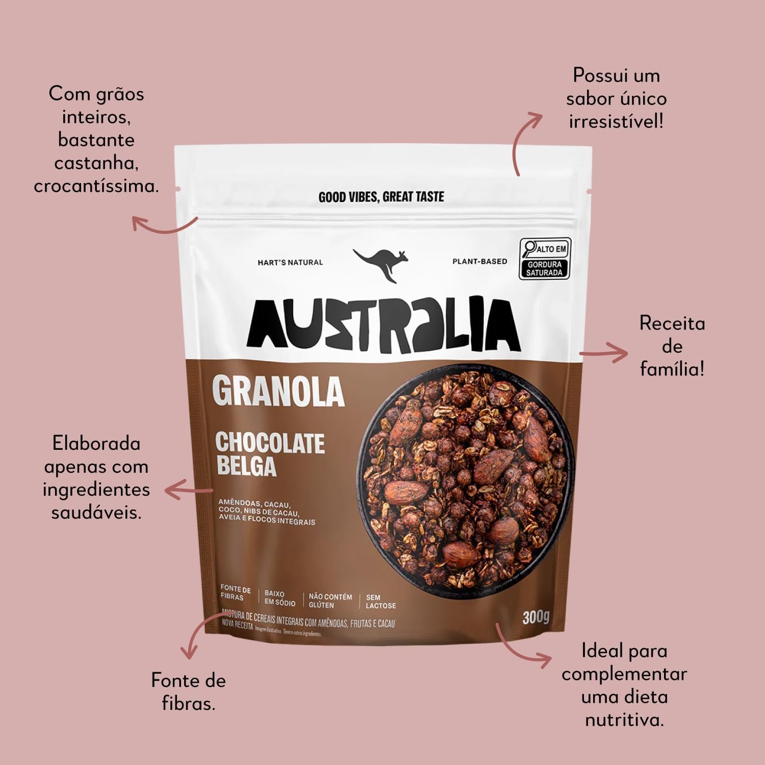 Hart’s Natural Granola Australia Belgian Chocolate | Granola Sem Glúten, Sem Lactose, Vegano | 100% Natural | Alto em Fibras | Snack Saudável | 300g