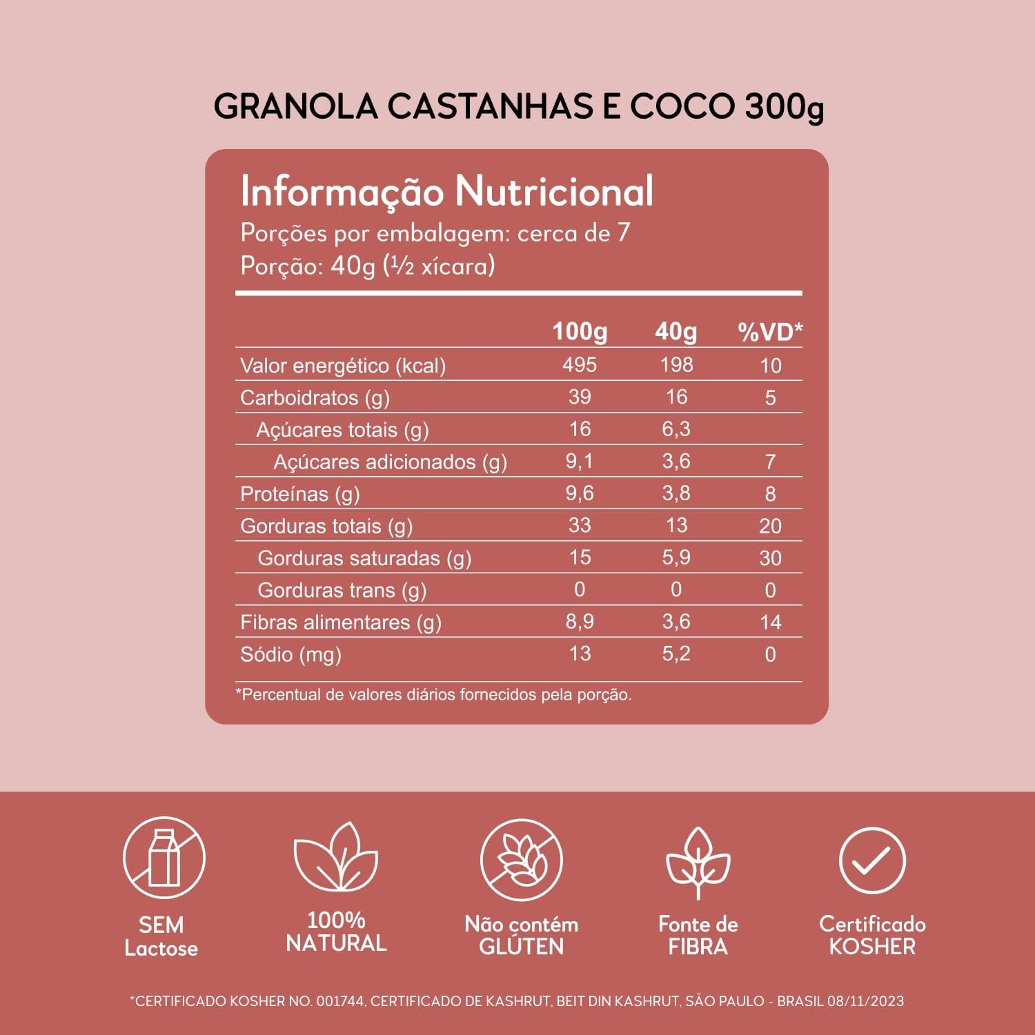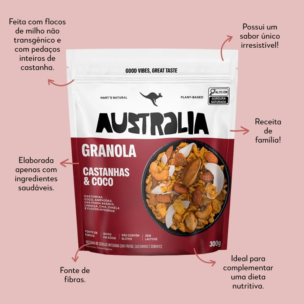Hart’s Natural Granola Australia Castanhas, Melado e Canela, Granola Sem Glúten, Sem Lactose, Vegano, 100% Natural, Alto em Fibras, 300g