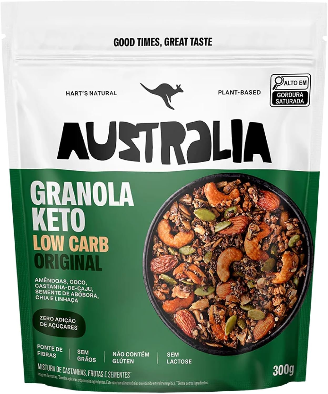 Hart’s Natural Granola Australia Keto Low Carb | Granola Sem Açucar, Sem Lactose, Sem Glúten, Vegano | 100% Natural | Alto em Fibras | Snack Saudável | 300g