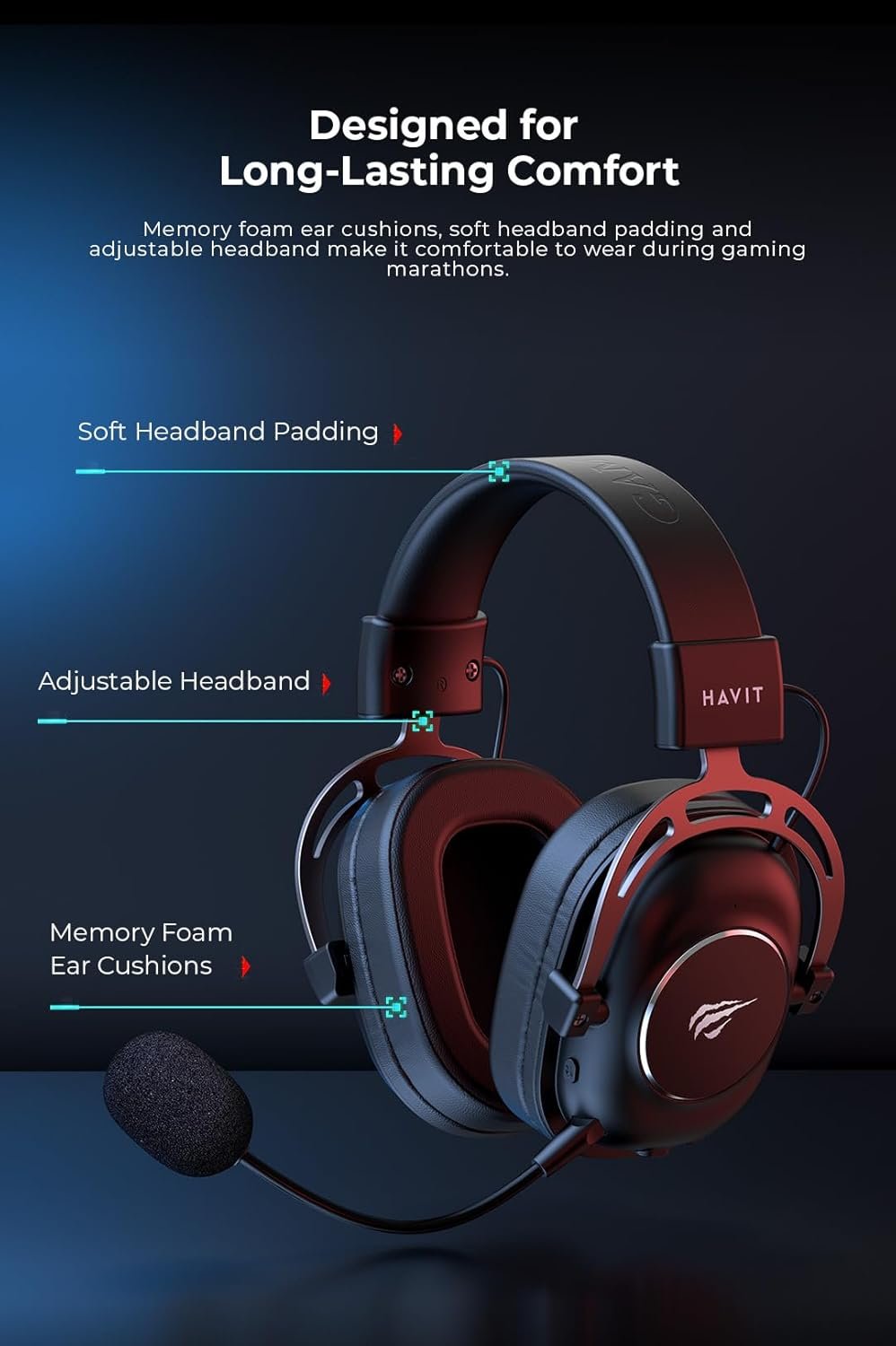 Havit Headphone Fone de Ouvido H2002YG Black, Quad-Mode, Sem Fio e Com Fio, Wireless 2.4GHz, Bluetooth, USB, 3,5mm, Gamer, com Microfone Destacável Com Cancelamento de Ruído, Falante 50mm, Preto