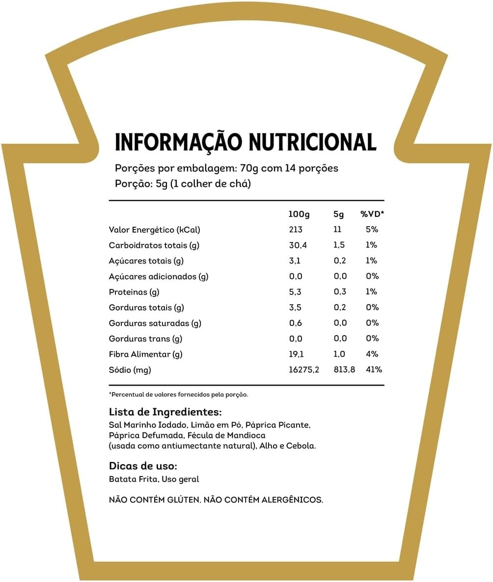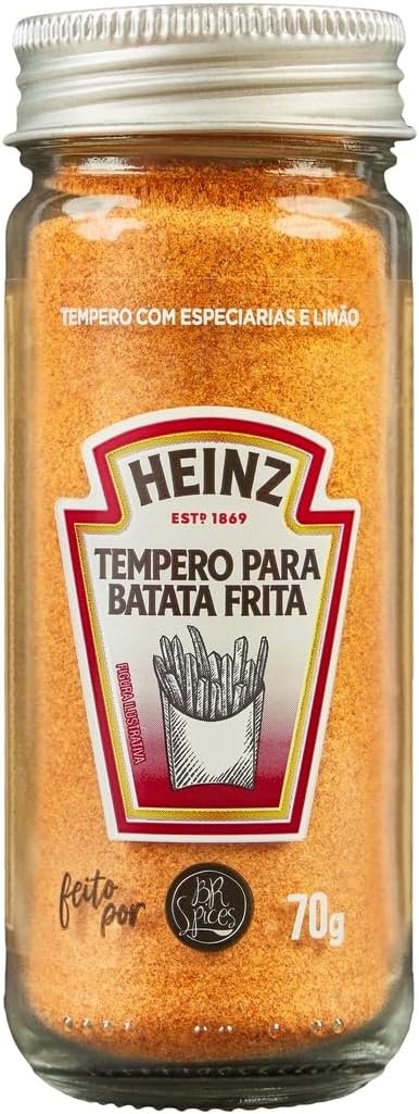 Transforme suas batatas fritas em uma experiência irresistível com o Tempero Para Batata Frita Heinz em vidro de 70g. Com a combinação perfeita de temperos e especiarias, seu sabor único e marcante vai conquistar o paladar de toda a família. Surpreenda a todos com batatas fritas crocantes por fora e macias por dentro, temperadas de forma especial. Aproveite momentos deliciosos e inesquecíveis com o Tempero Para Batata Frita Heinz!