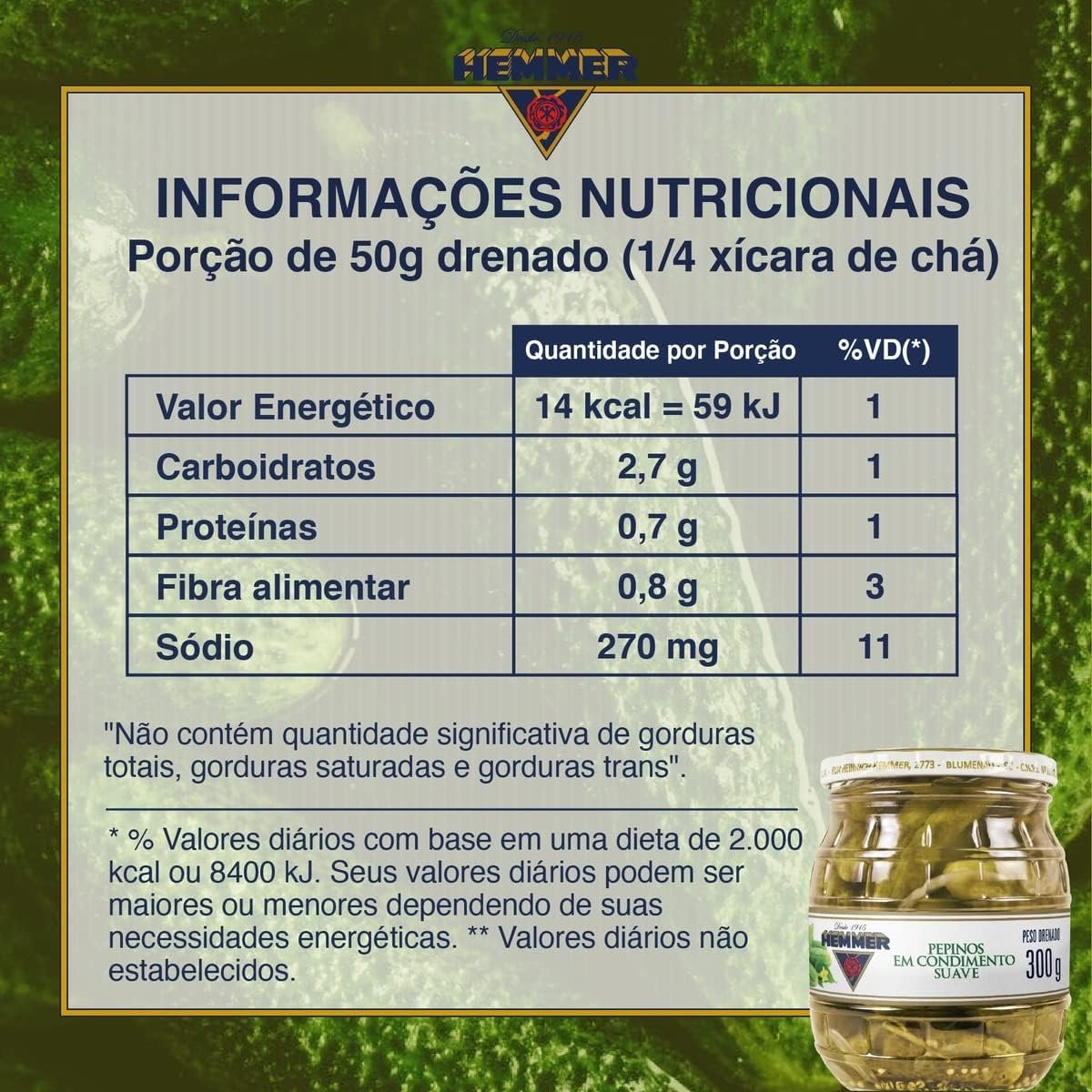 Hemmer Pepinos Em Condimento Suave 300GHemmer Pepinos Em Condimento Suave 300G