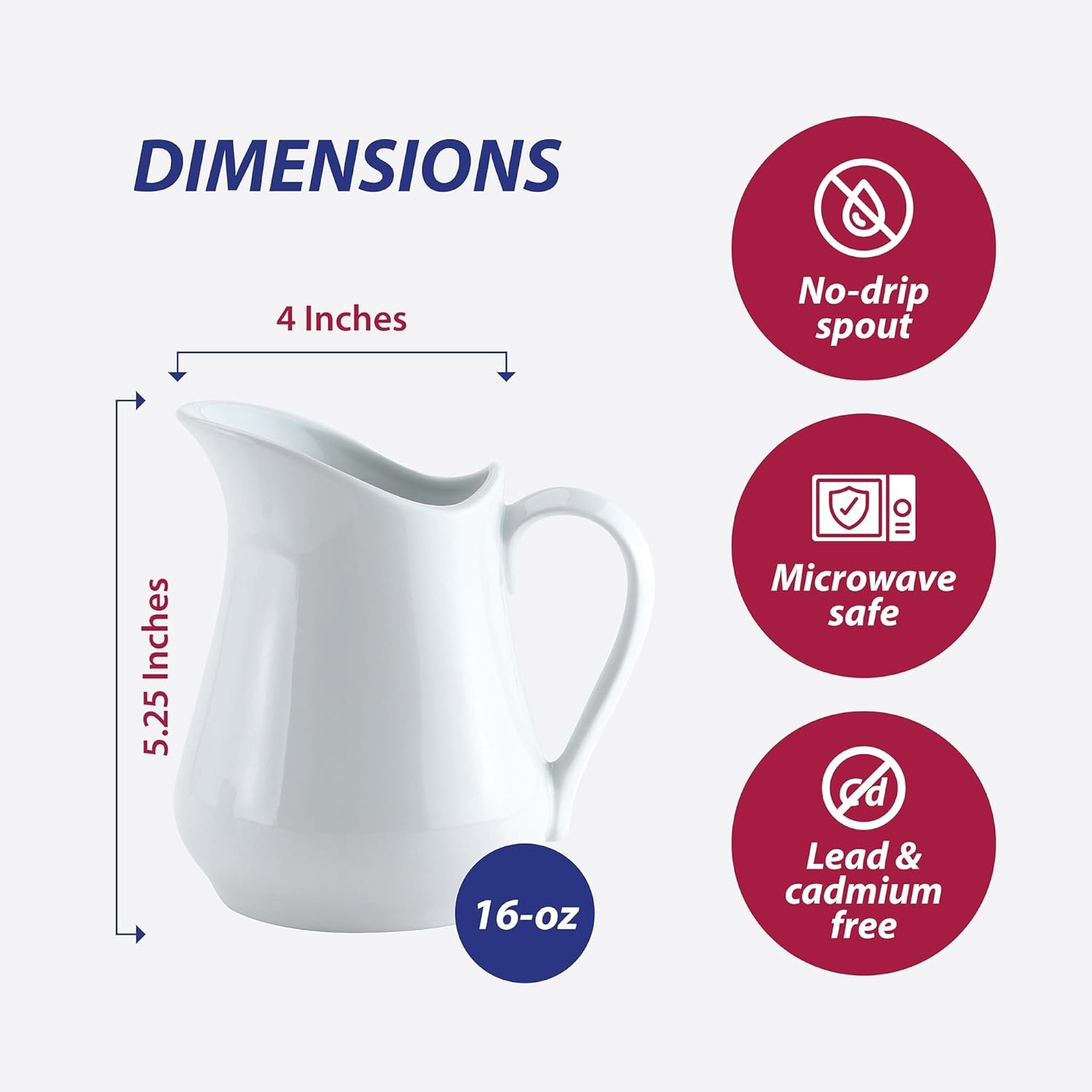 HIC Jarro de creme com alça, porcelana branca fina, 473 ml