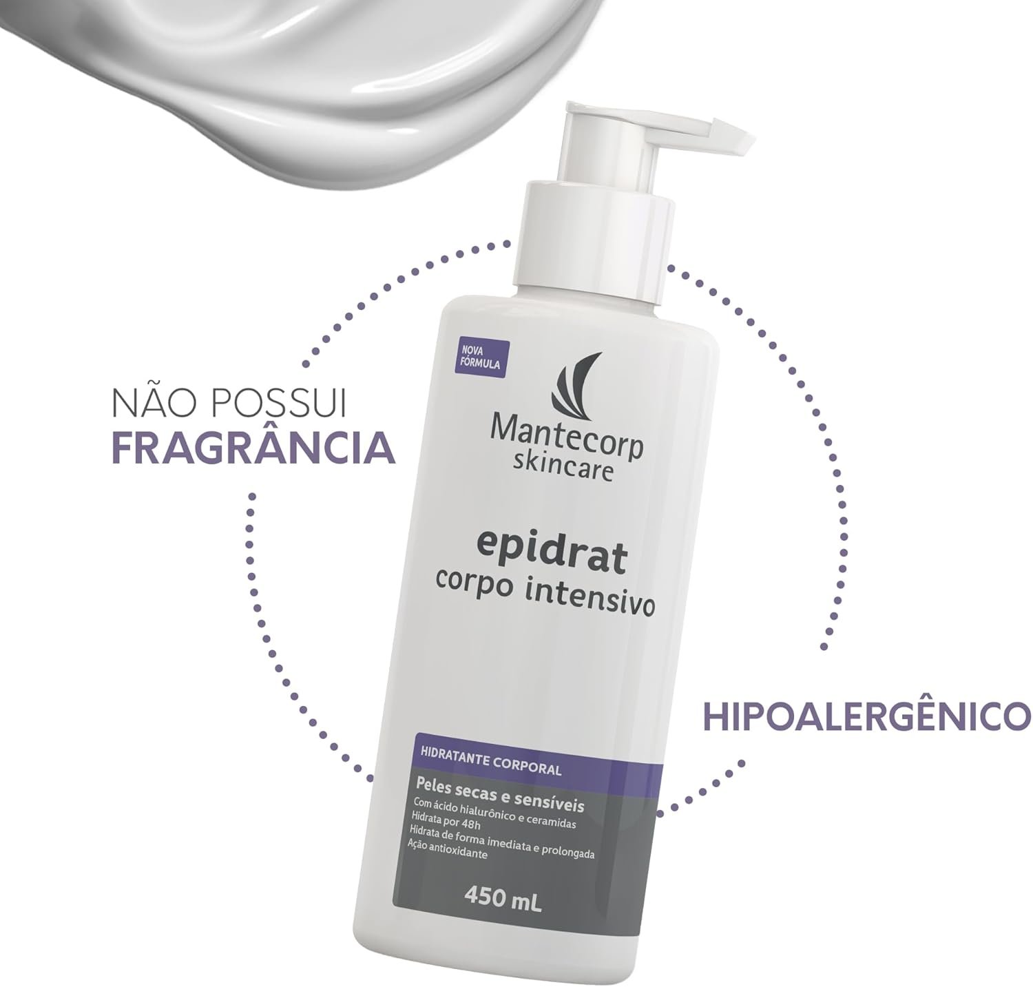 Hidratante Corporal Epidrat Intensivo – 450ml – Hidratação e Nutrição – Para Peles Secas – Fórmula de Longa Duração e Rápida Absorção – Mantecorp