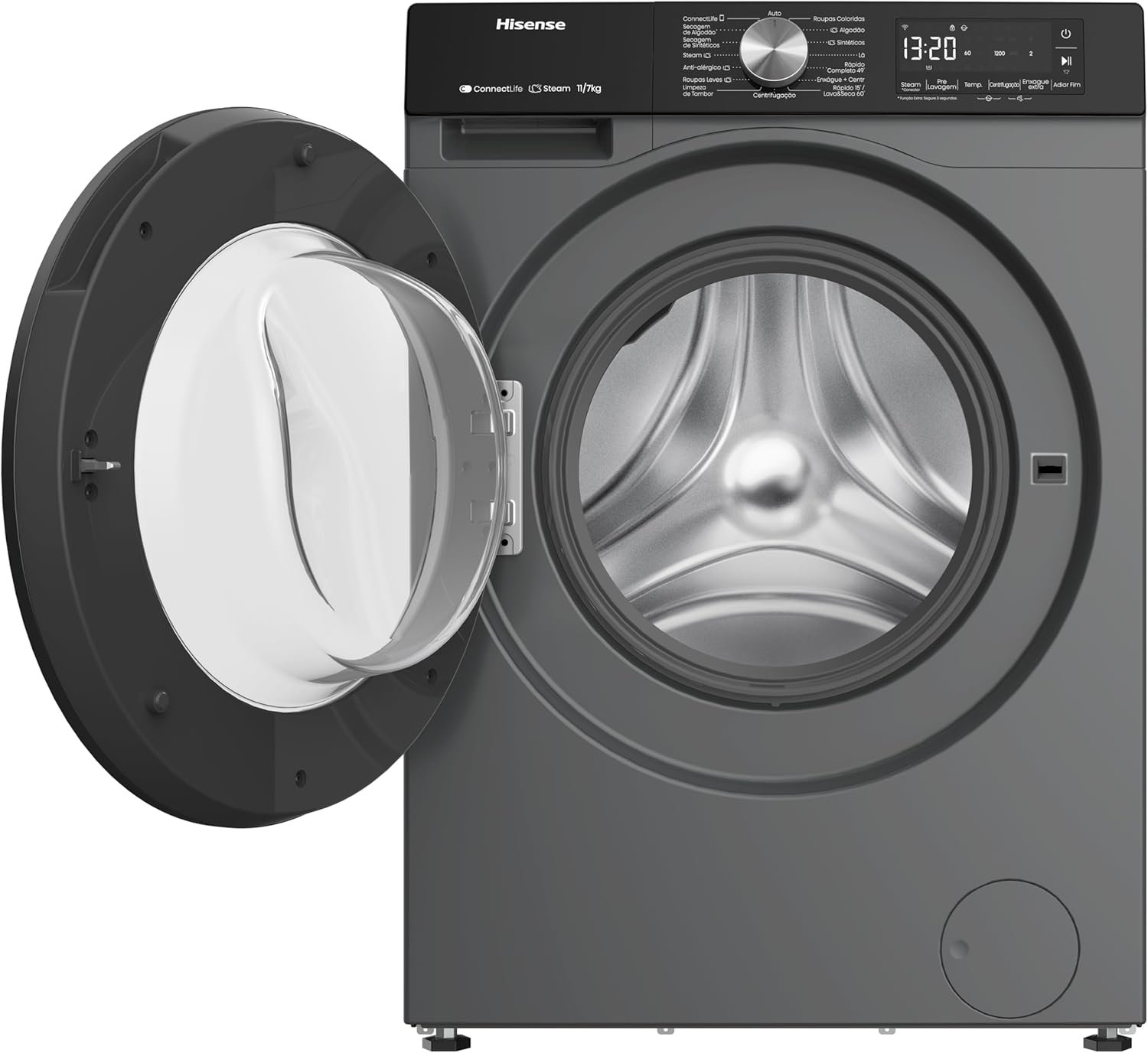 Hisense Lava e Seca, 11kg Lavagem/7kg Secagem, Wi-Fi, Steam, 13 Programas, Motor Inverter, Painel Touch, Titanium WD3S11-220V