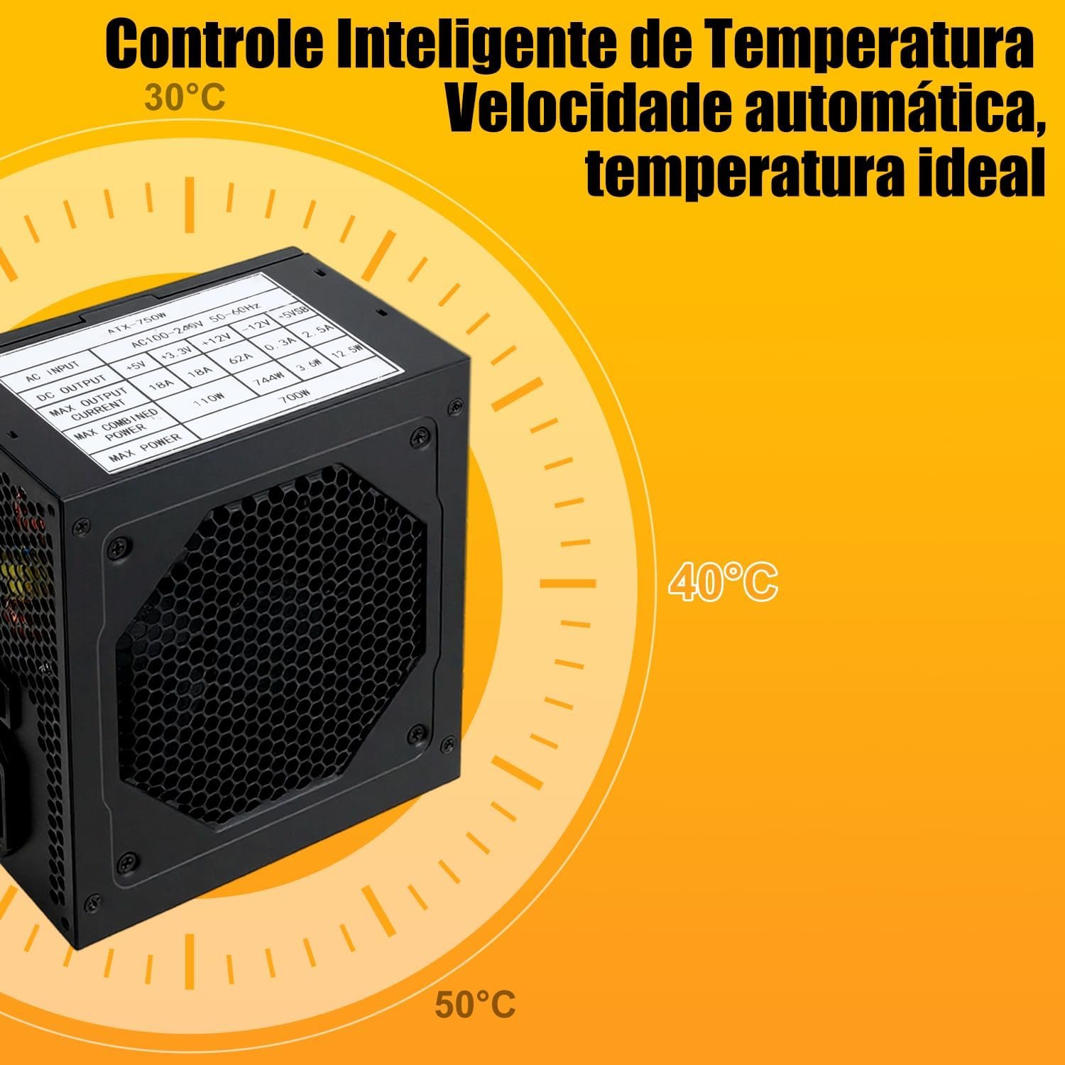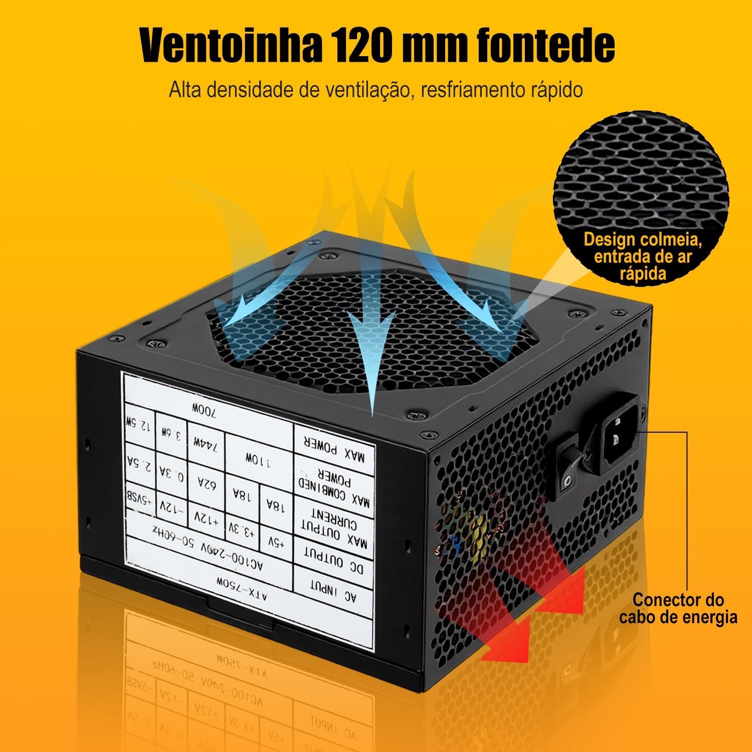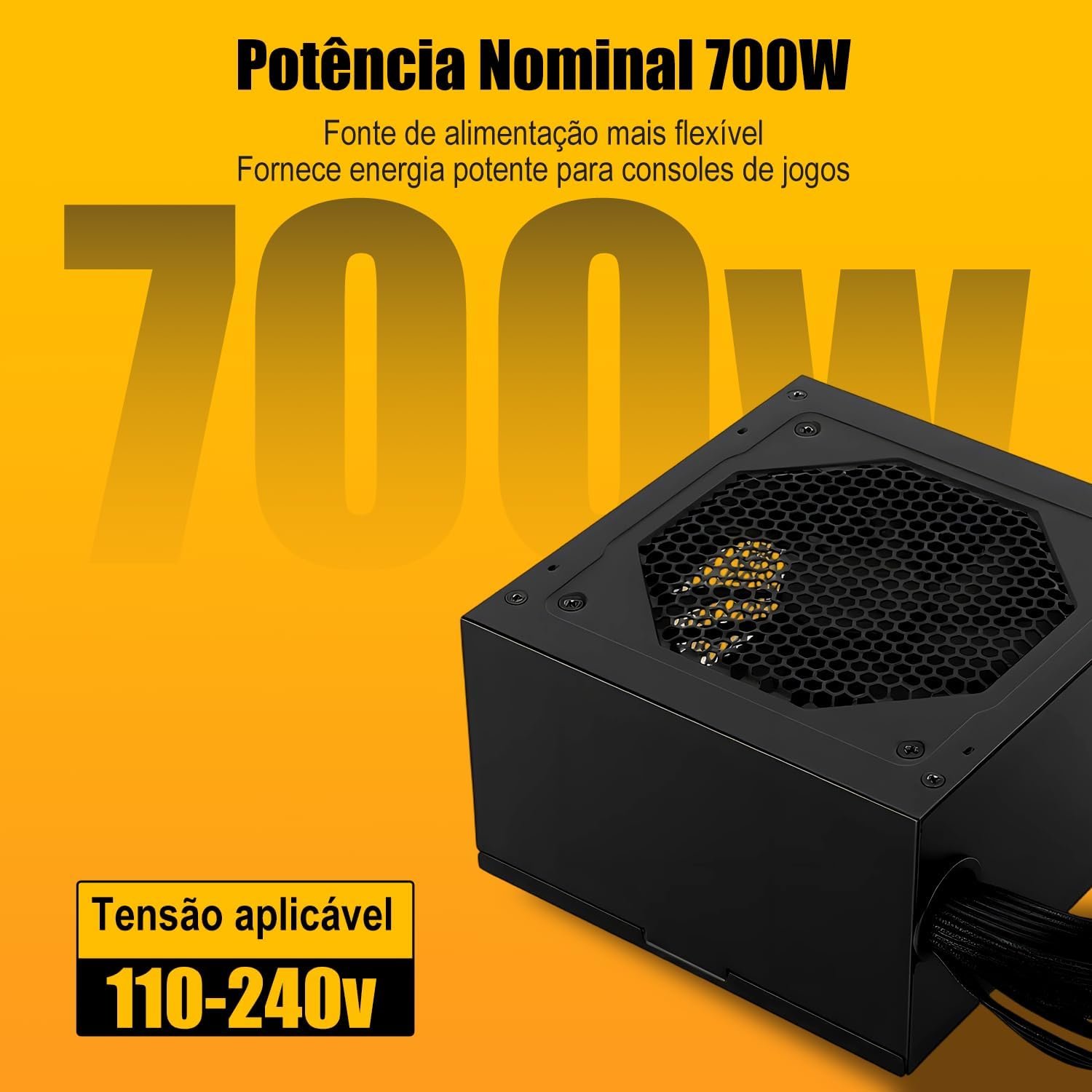 Hivento Fonte, 700W, ATX Não Modular Fonte PC, Certificação 80 Plus Bronze, PFC Ativo, Baixo Ruído, Acompanha Cabo de Energia, 110/240V, Cor Preta