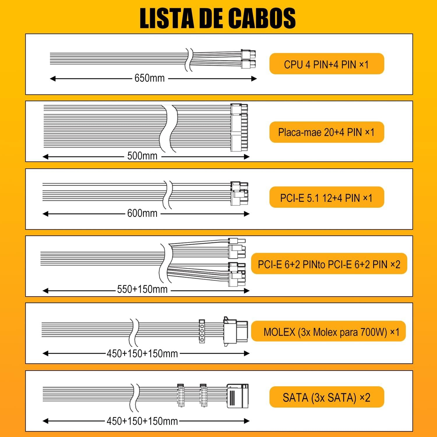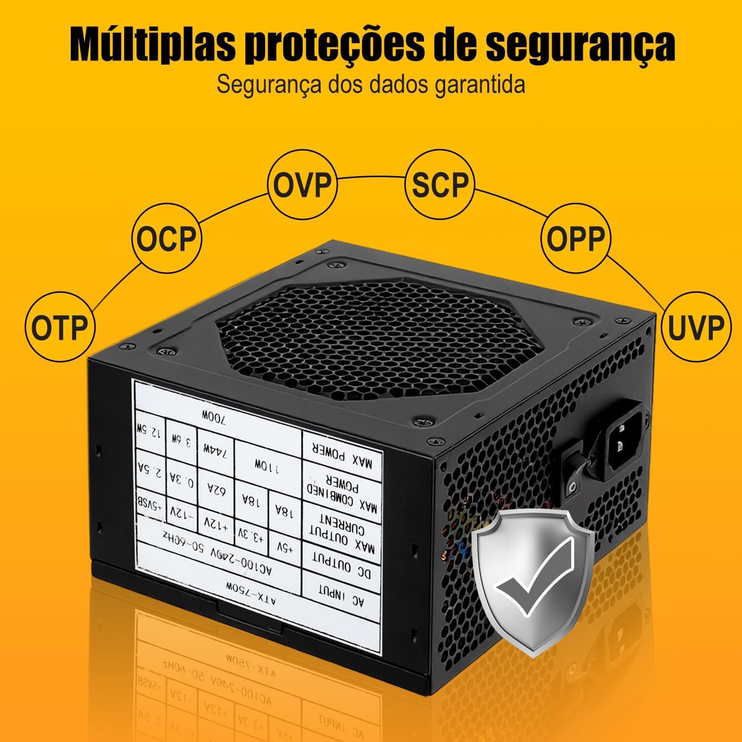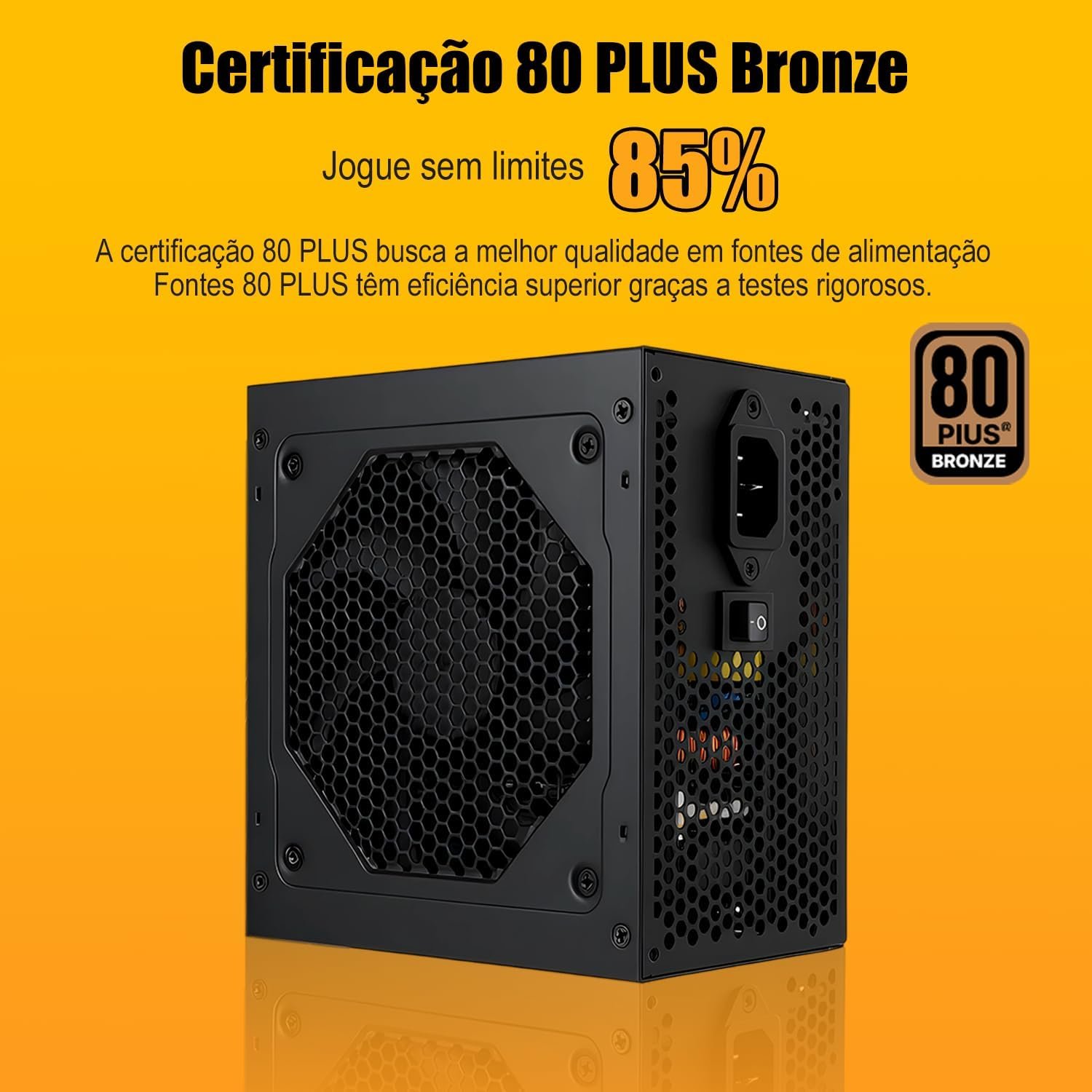 Hivento Fonte, 700W, ATX Não Modular Fonte PC, Certificação 80 Plus Bronze, PFC Ativo, Baixo Ruído, Acompanha Cabo de Energia, 110/240V, Cor Preta