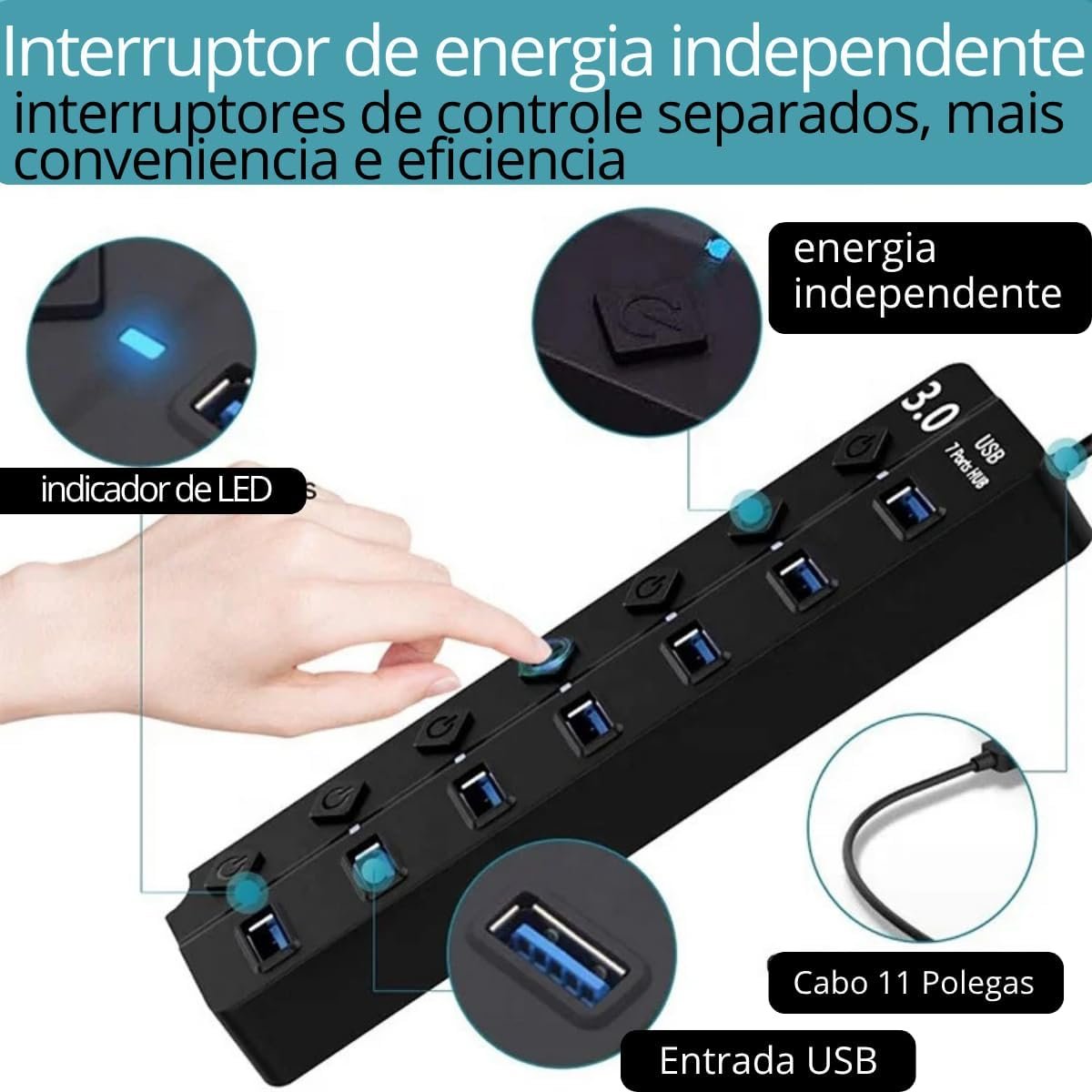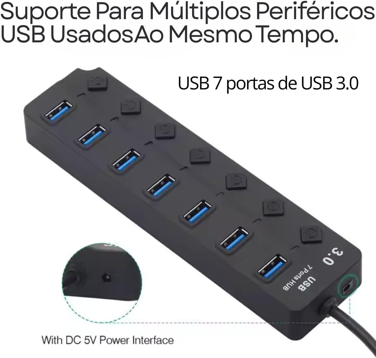 Hub USB 3.0 Com 7 Portas: Conecte e Gerencie seus Dispositivos com Facilidade