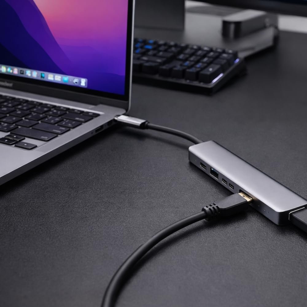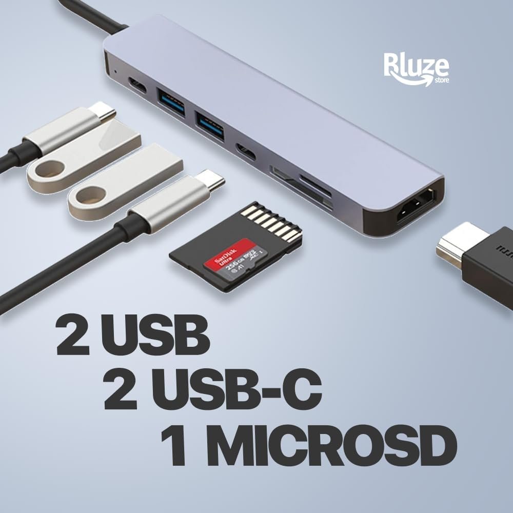 Hub USB C 7 em 1 adaptador multiportas com saída HDMI 4K a 60hz fonte de alimentação tipo C carregamento de 7 portas com leitor de cartão SD 3.0 PremiumHub USB C 7 em 1 adaptador multiportas com saída HDMI 4K a 60hz fonte de alimentação tipo C carregamento de 7 portas com leitor de cartão SD 3.0 Premium