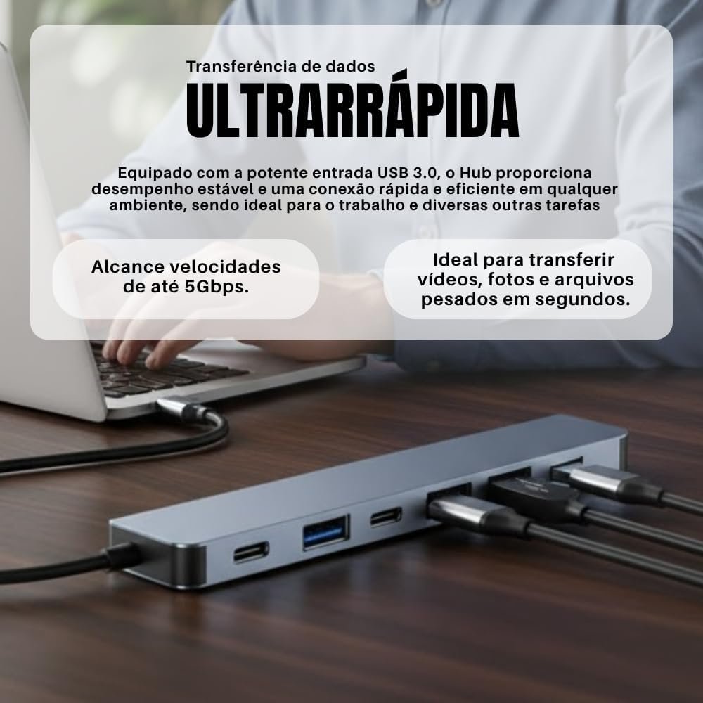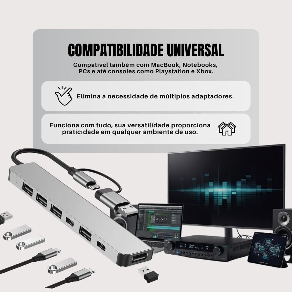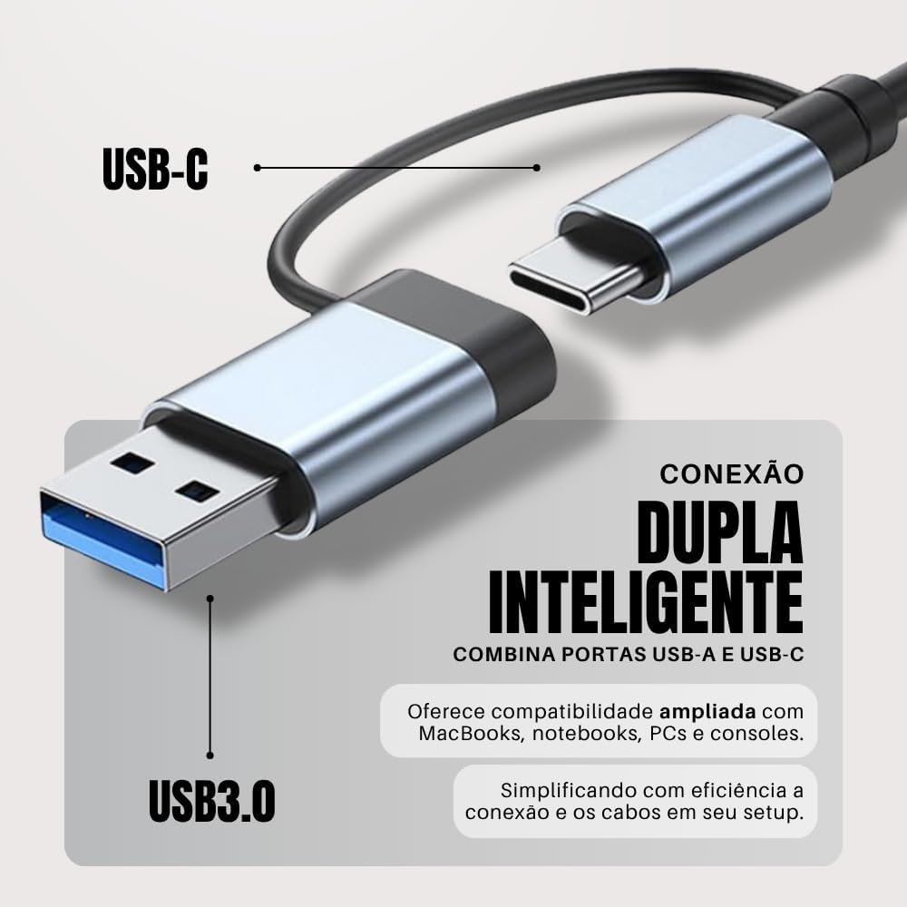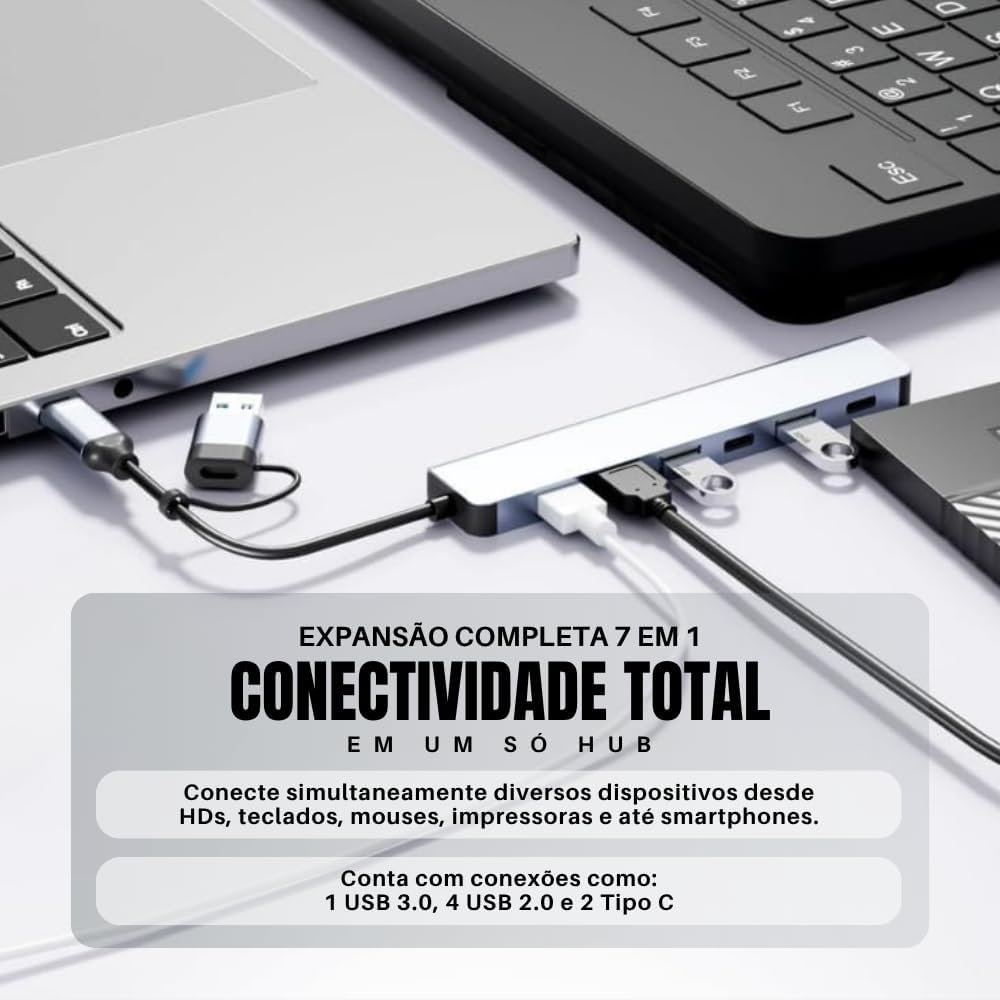 Hub USB-C e USB-A 3.0 Adaptador 7 em 2 Conversor Portátil Multiportas com USB 3.0 Tipo C Compatível com Notebook MacBook PC Pen Drive 5Gbps