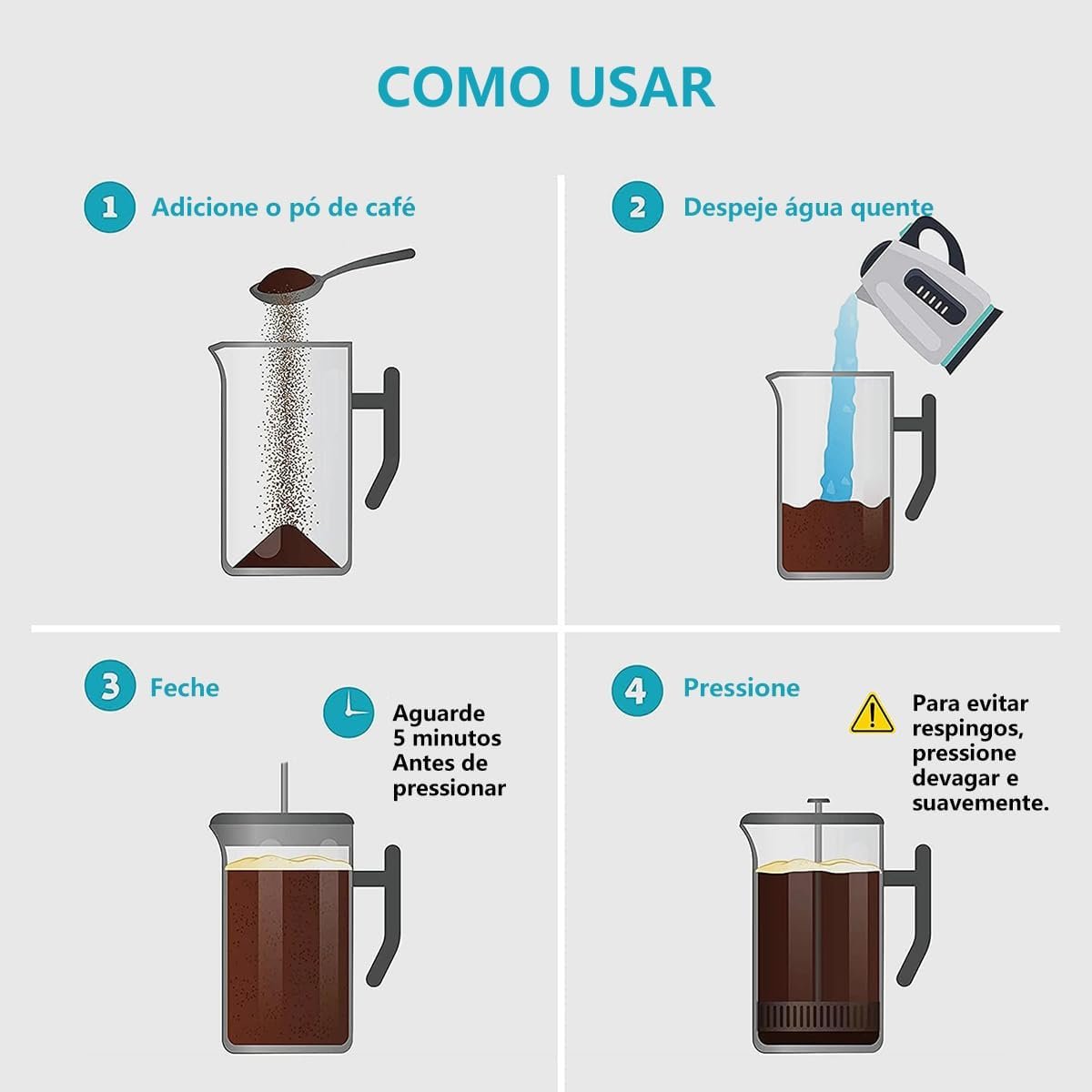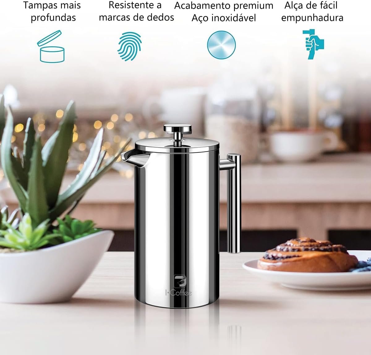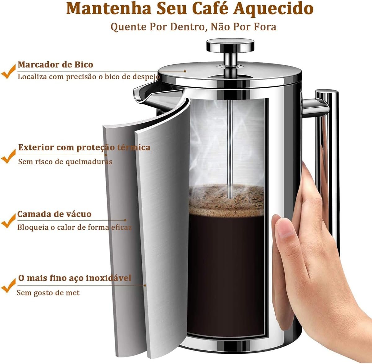 iCoffee 700 mL Cafeteira Prensa Francesacom Filtro de 4 Estágios e Isolamento Duplo, Cafeteira de Aço Inoxidável