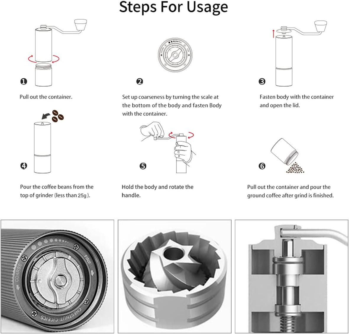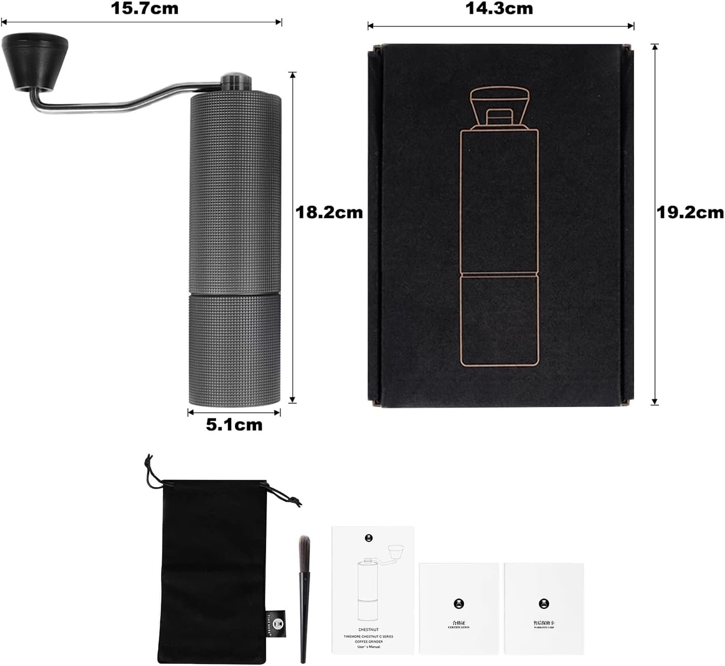 Título do Produto: iCoffee Moedor Manual De Café Ajustável Com Pincel M3PRO profissional