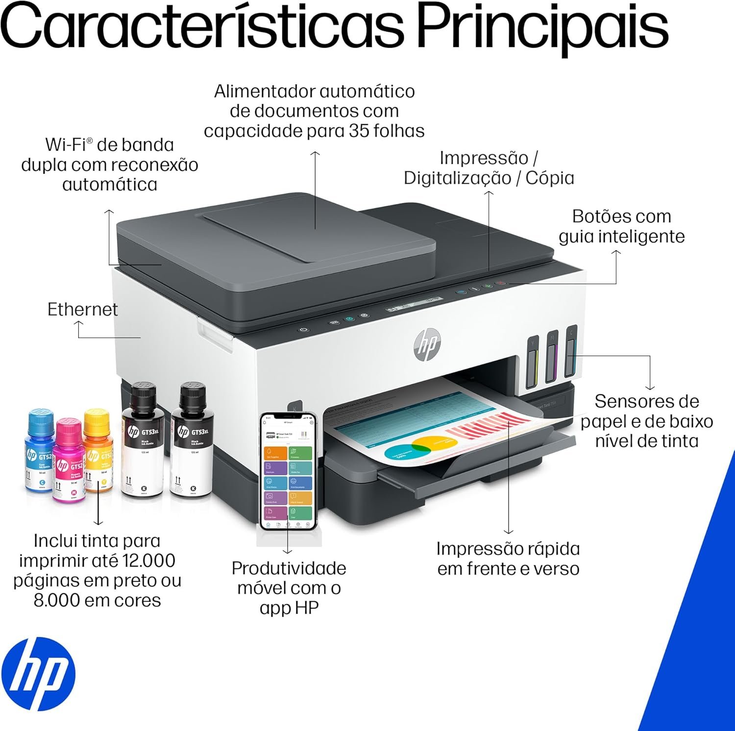 Impressora Multifuncional HP Smart Tank 754 Tanque de Tinta Colorida Wi-Fi Scanner Duplex, Bluetooth. Funções: Imprimir, Copiar, Digitalizar. Cor: Branco (2H0A6A#AK4)