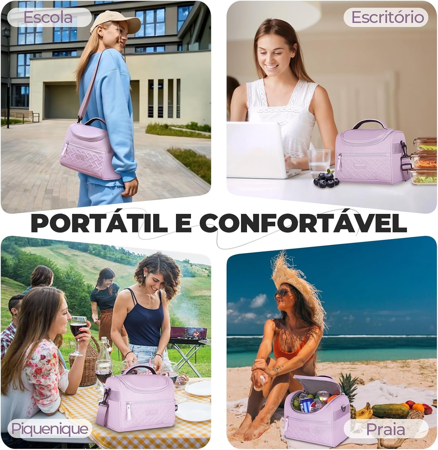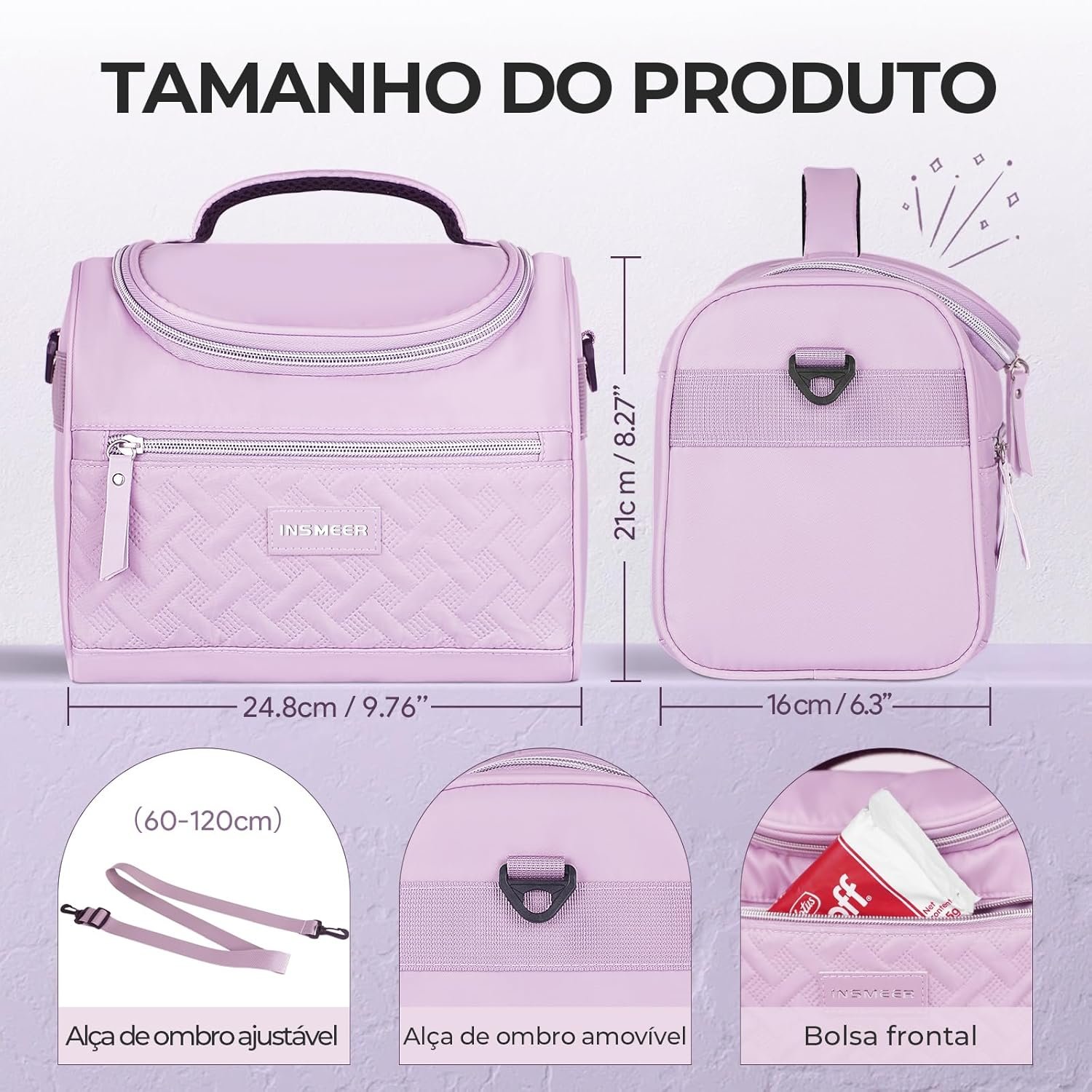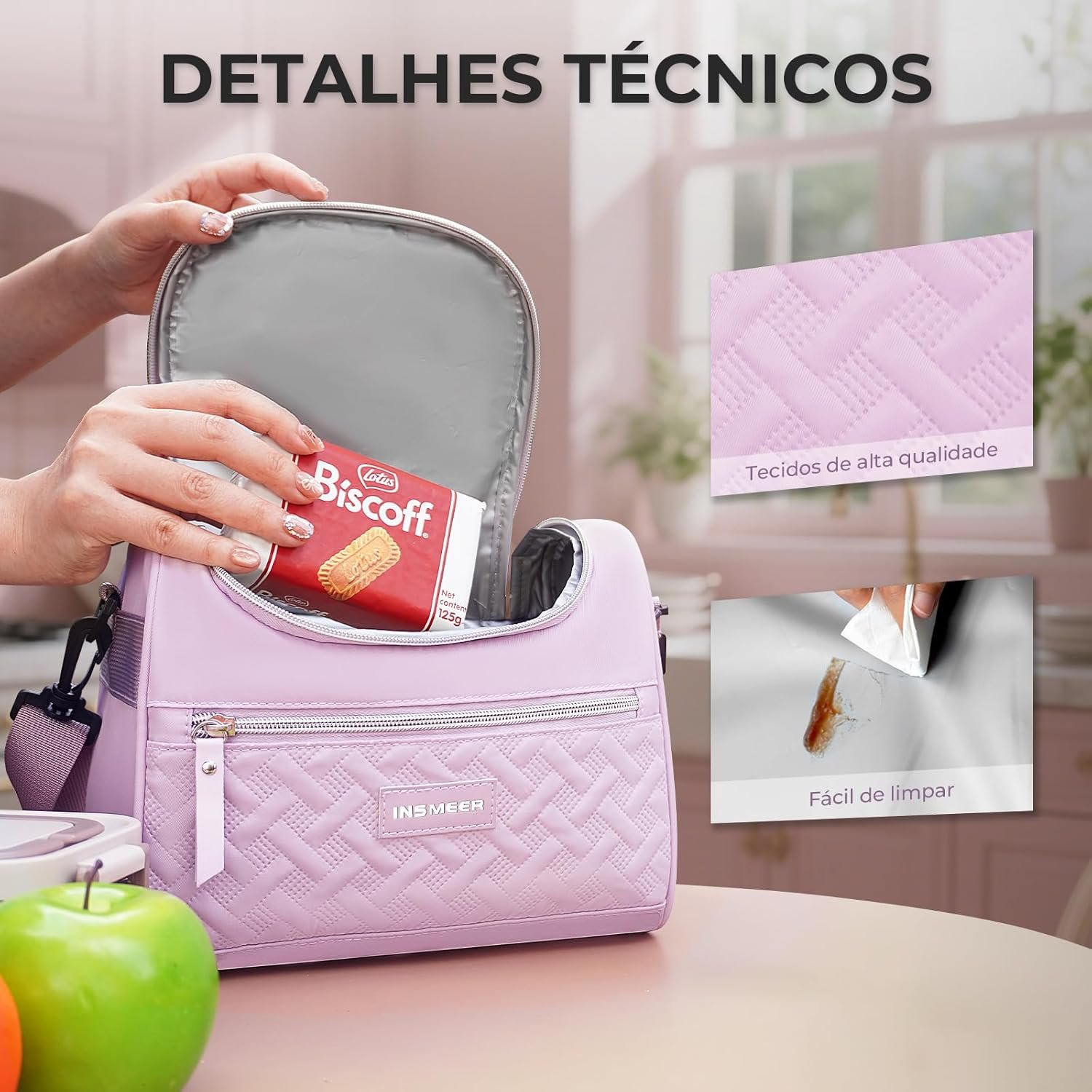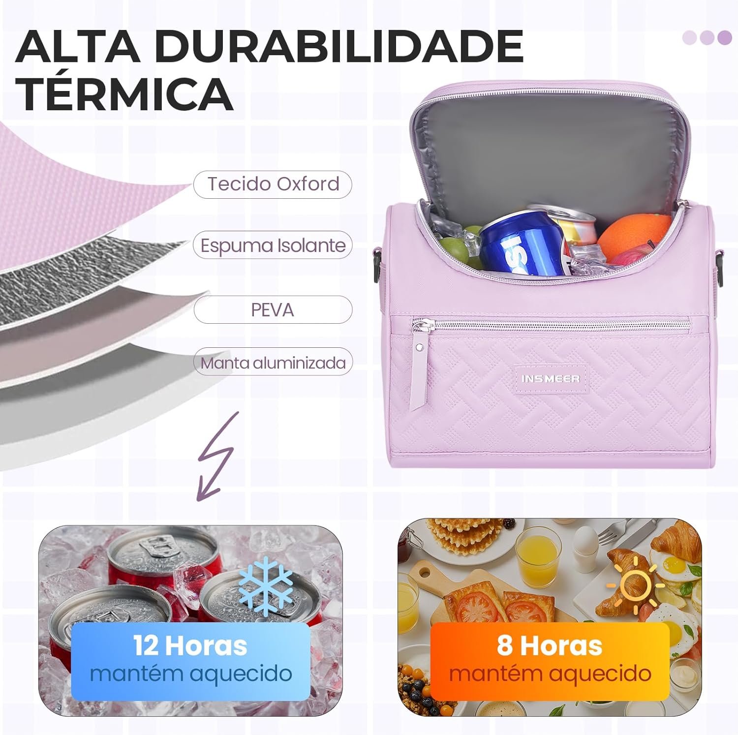 INSMEER Bolsa Termica Lancheira Marmita – 8L, Lancheira Térmica Impermeável, Leve e à Prova de Vazamentos, Alça Ajustável para Ombro, para Academia, Trabalho, Passeio, Praia – Unissex Premium (Roxa)
