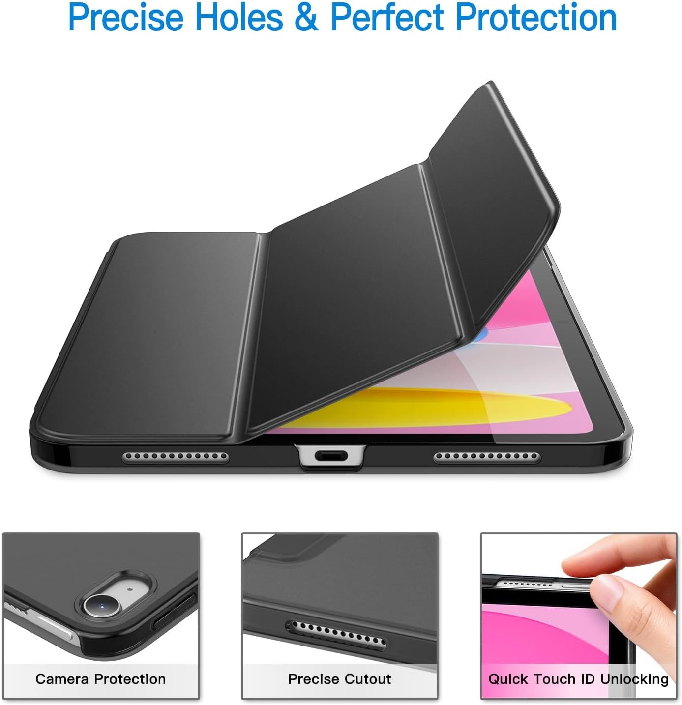 JETech Capa para iPad (A16) 11ª/10ª Geração (2025/2022), Case Rígida de Suporte Fino com Despertar/Sono Automático (Preto)