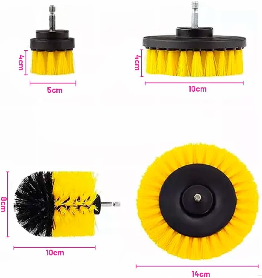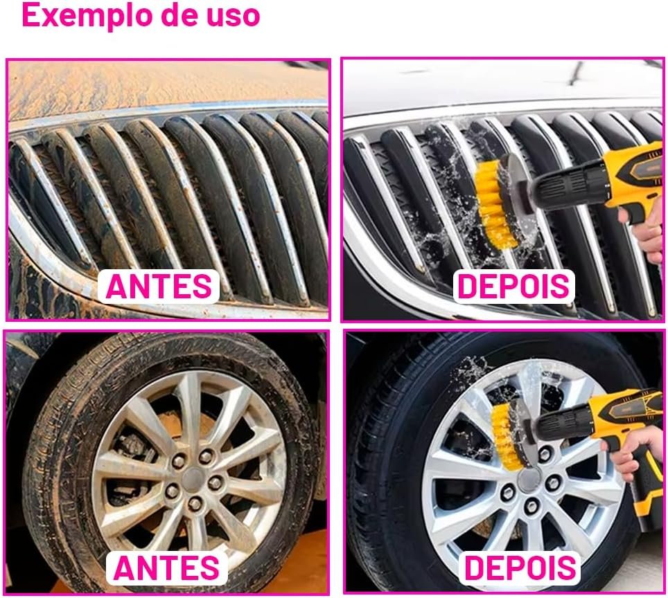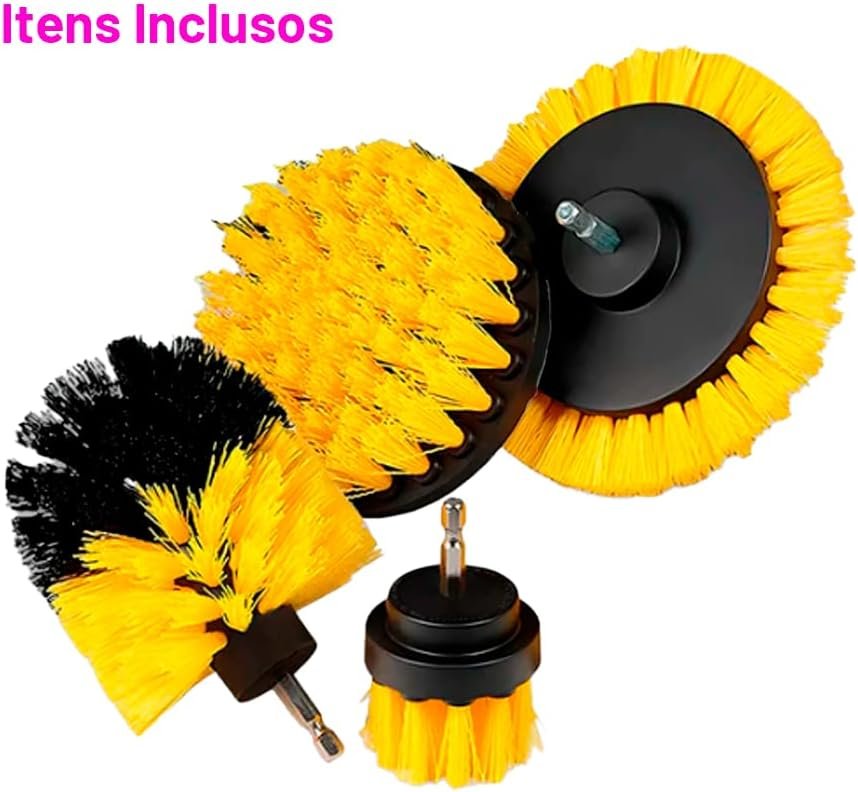 JEX Kit Escovas Multiuso 4pç Limpeza Geral e Automotiva Compacto e Leve com Conexão para Politriz e Furadeira ELF-007