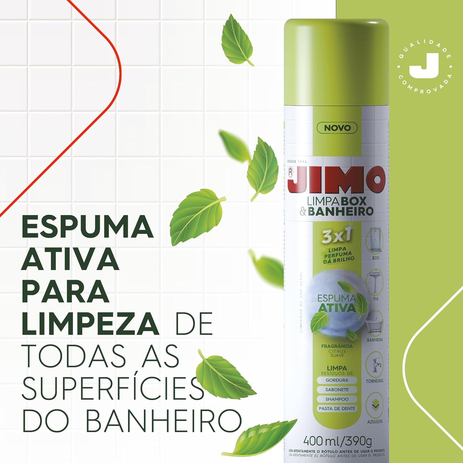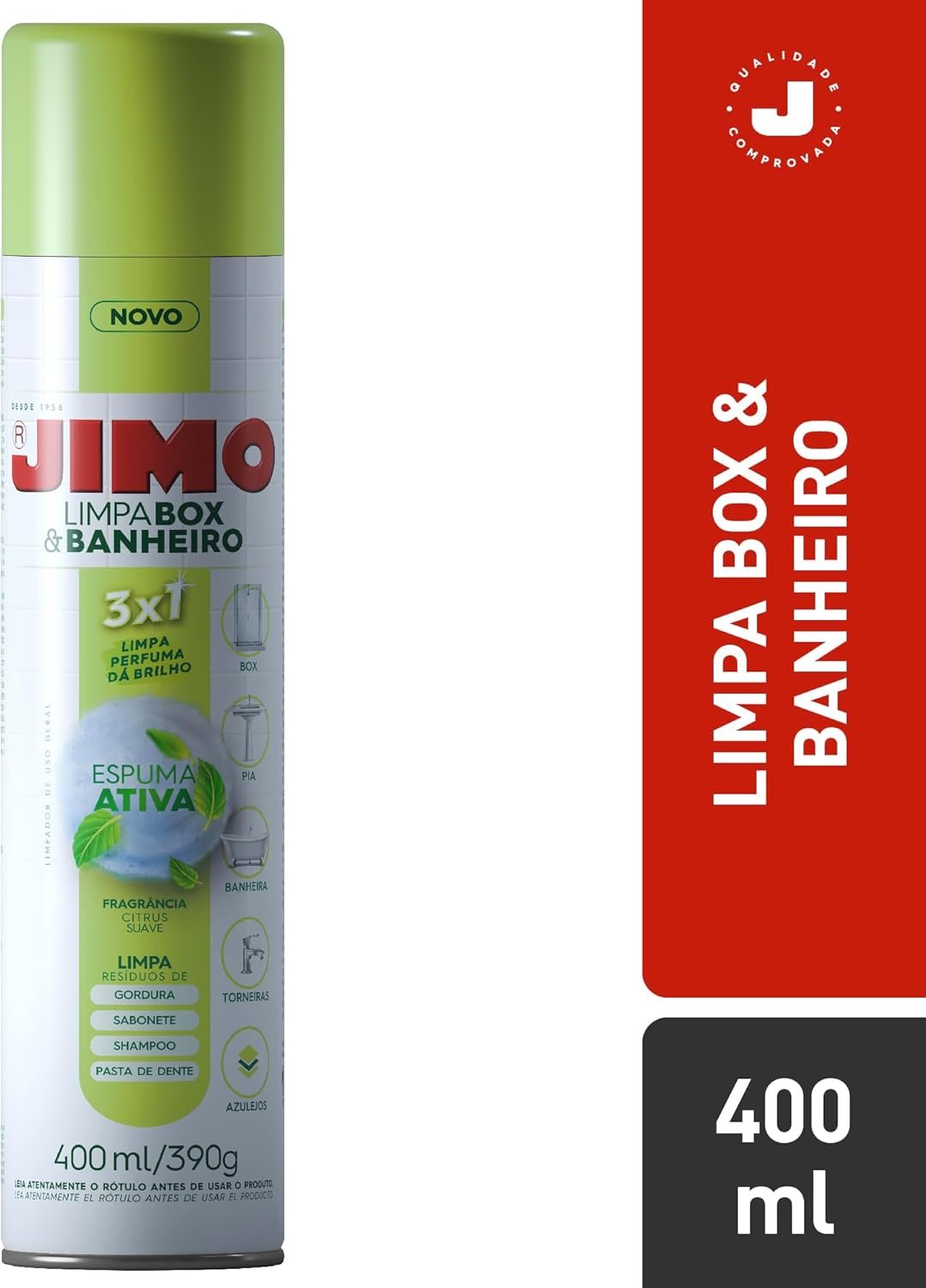 Título do Produto: JIMO Limpa Box & Banheiro Limpa Perfuma Dá Brilho Espuma Ativa Aerossol 400ml